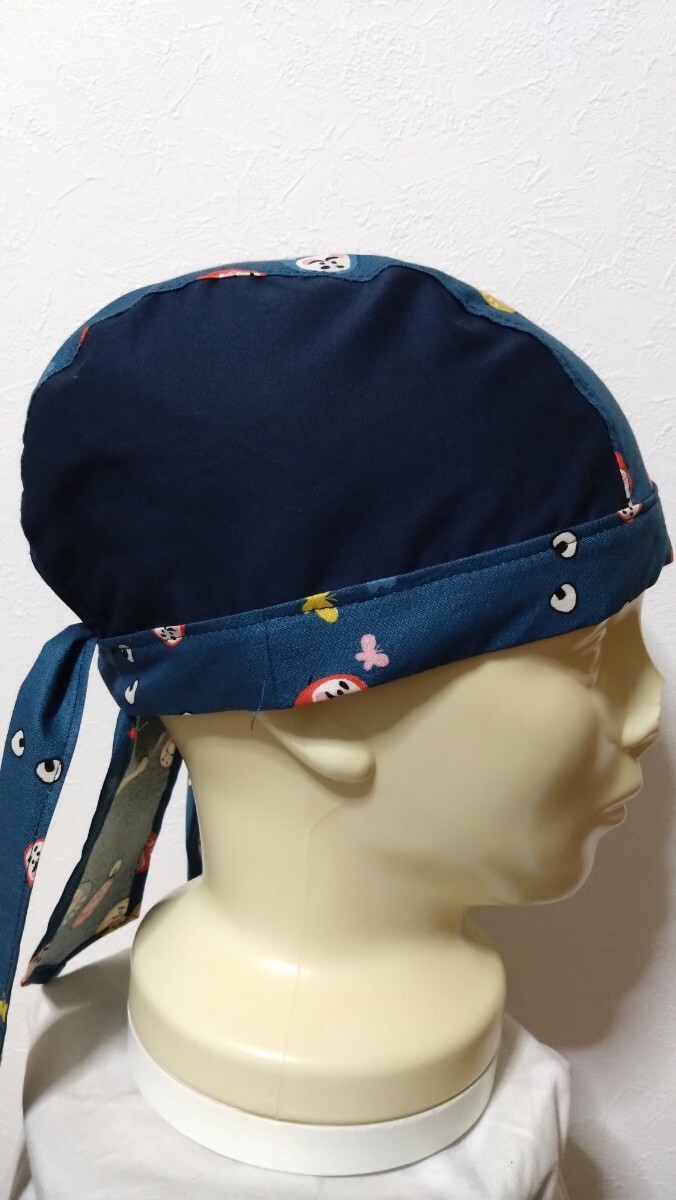 ★バンダナキャップ★ハンドメイド 和柄 だるま×無地 おにぎり ちょう 紺