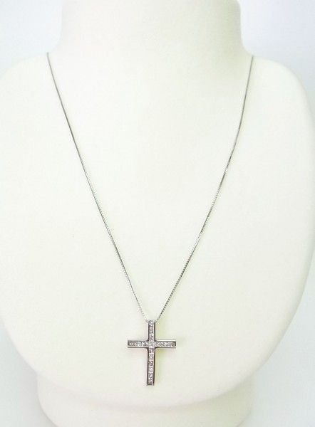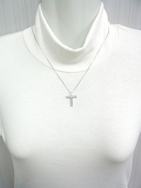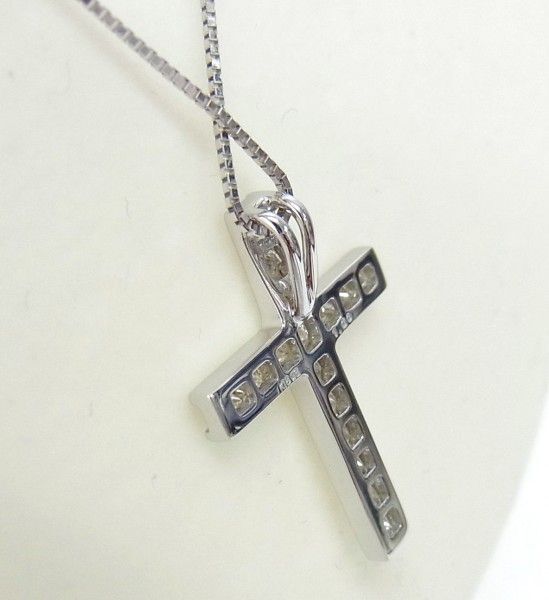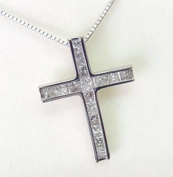 計1.00ct 角型カット天然ダイヤモンド クロス 十字架 18金ホワイト製ペンダントネックレス 卸価格 送料込
