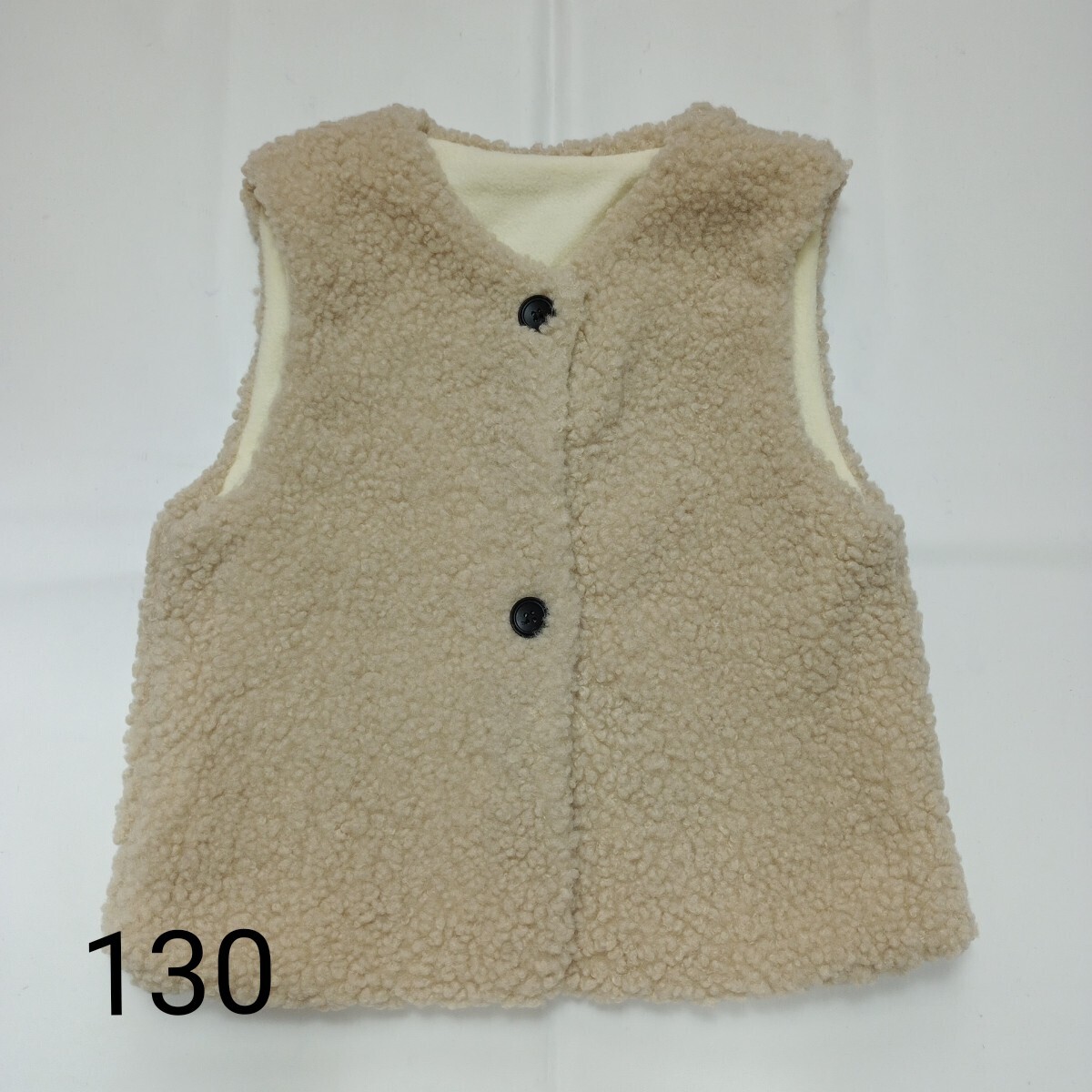 【未使用】130 幼児 男の子 女の子 ノースリーブ ベスト ボア アウター もこもこ あったか 裏起毛 カジュアル かわいい おしゃれ ⑥