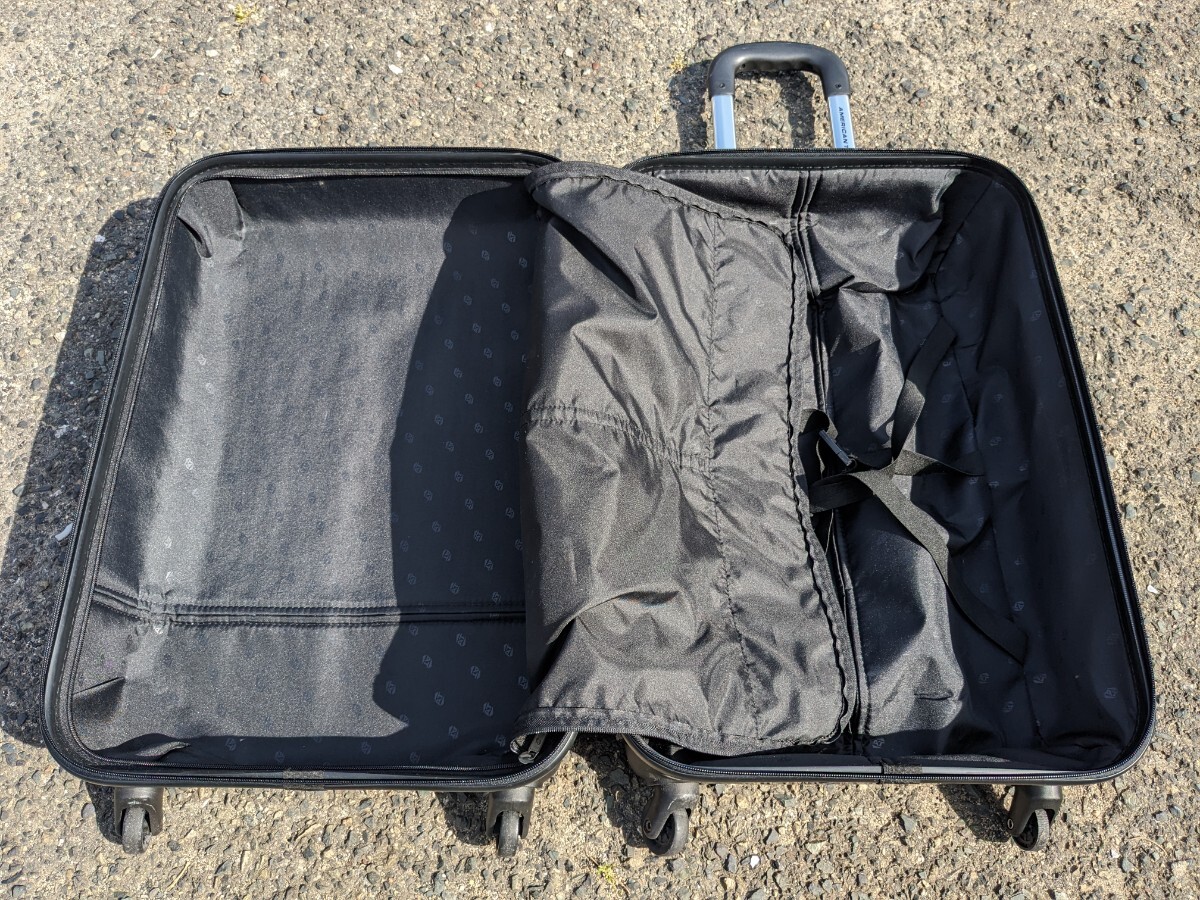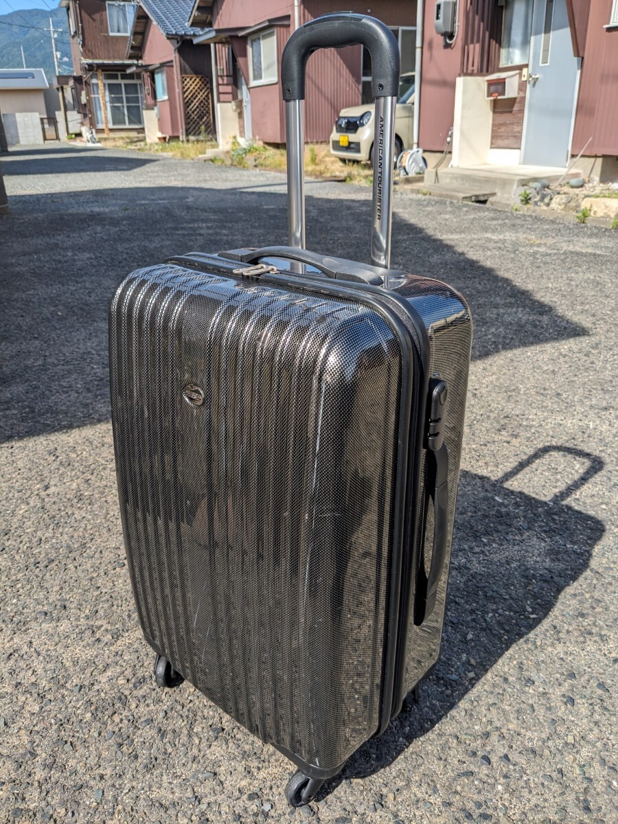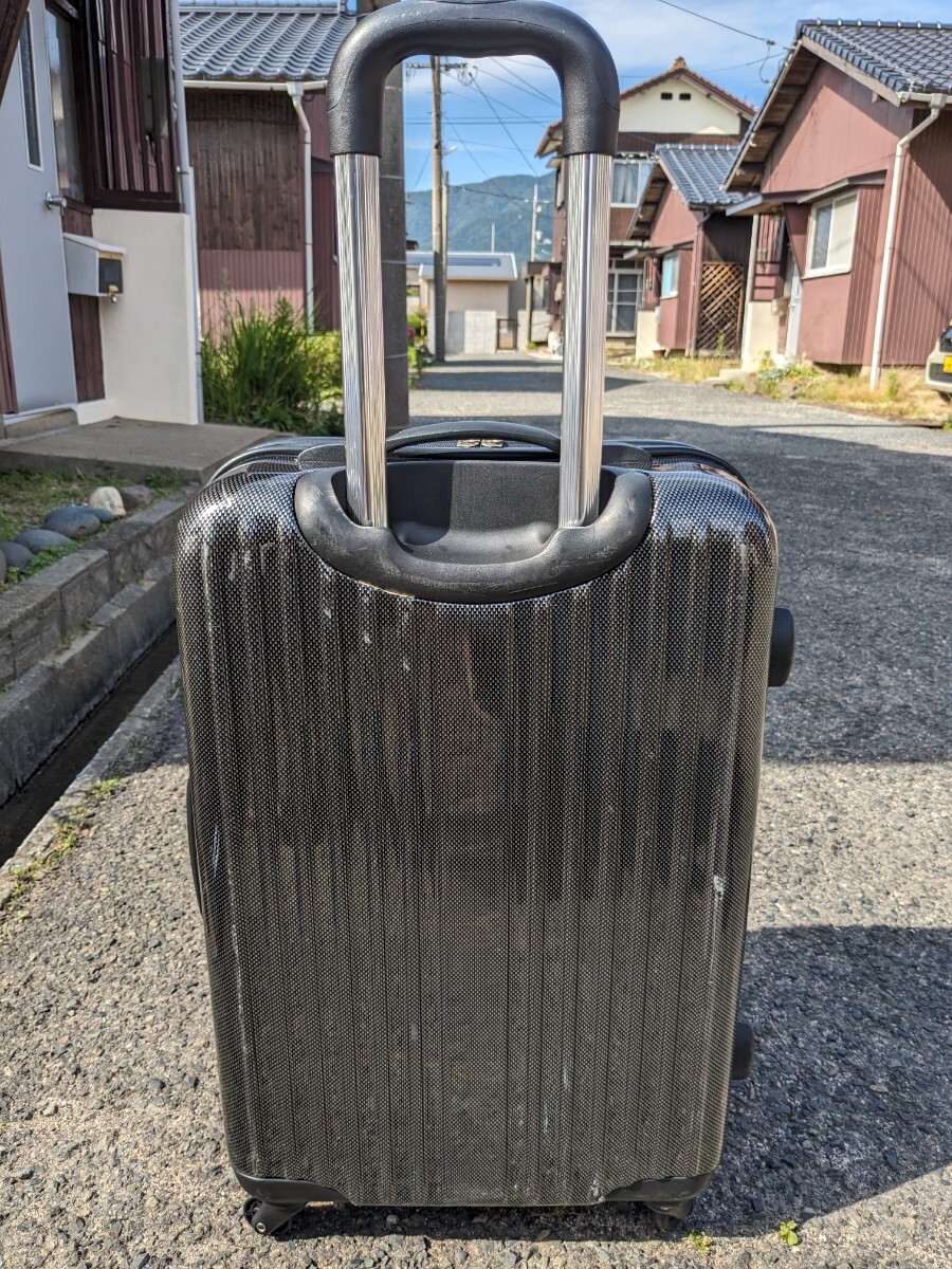 大型 大容量 スーツケース・キャリーケースの中古品になります。買い替えの為、出品致します。サイズは約なりますが、縦65センチ(キャスター込み)、横43センチ、幅、26センチになります。カーボン柄が剥がれている箇所がありますが、使用には問題ないと思います。画像にて判断して下さい。中古品につき、傷や汚れ、使用感はあります。ご理解の上、入札して下さい。3Nで宜しくお願い致します。