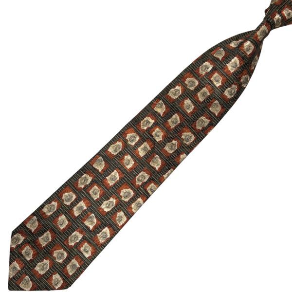 ★パターン柄★高級ネクタイ★Ermenegildo Zegna★カーキ系 エルメネジルド・ゼニア USEDプレス済み t1062