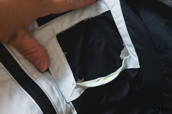 ファスナーの紐欠品・ロゴ割れがあります。チケット部分破れがあります。