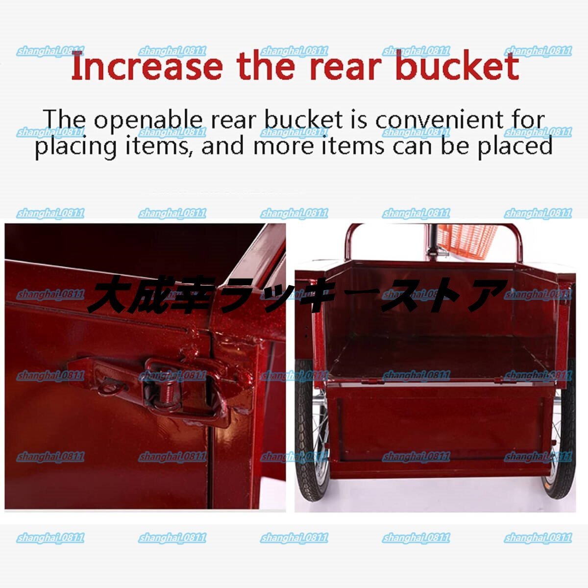 当社の三輪車には大きな後部バスケットが付いており、買い物やたくさんの荷物を積むのに便利です。レジャー、ショッピング、運動など、いつでもどこでもお使いいただけます。