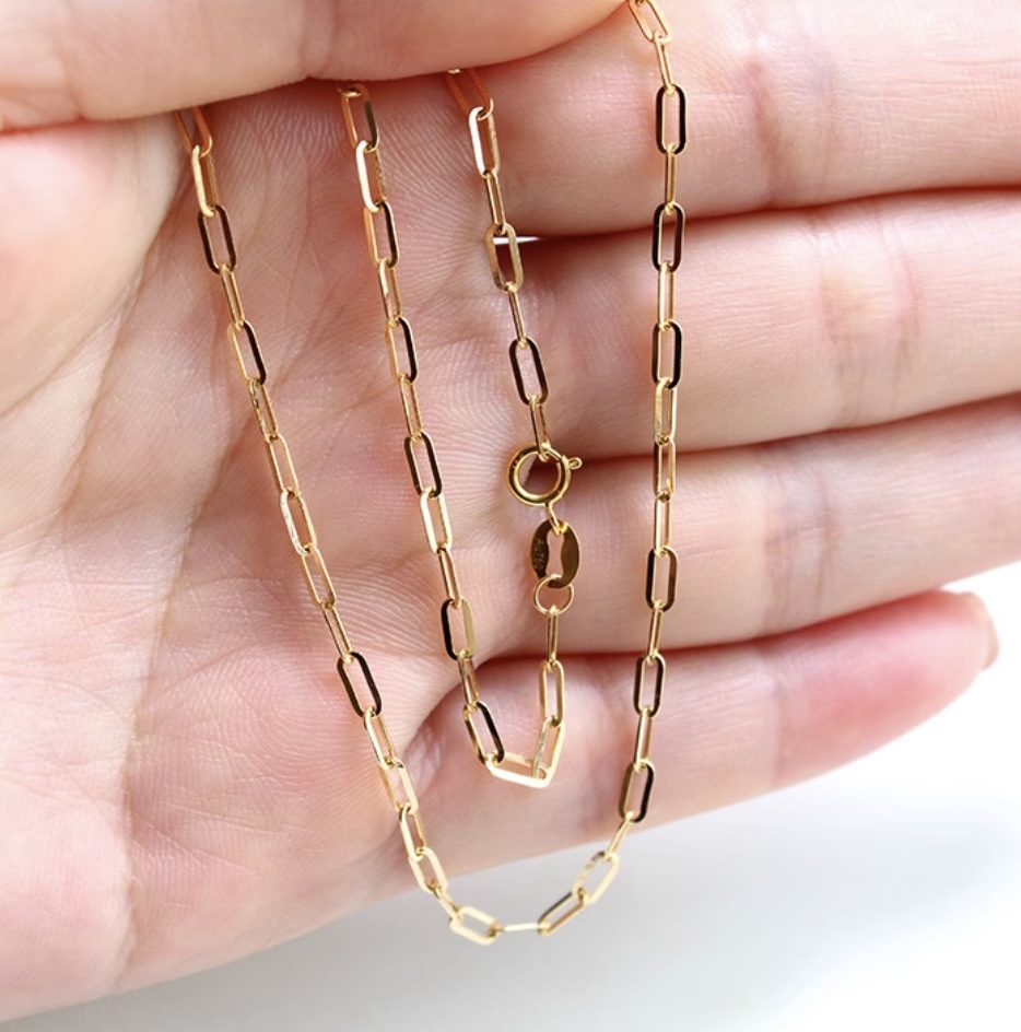 18K YG チェーン ネックレス ペーパークリップチェーン K18 K18YG チェーンネックレス ネックレスチェーン 太さ2.1mm 長さ40cm~