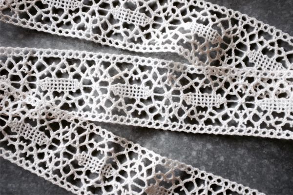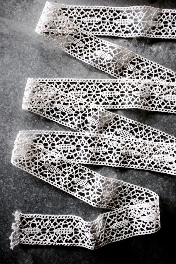 残3 19世紀 フランス 5.5X100c リネン 薔薇枝と小鳥の巣とボビンレースa アンティーク ハンドメイドレース ピュイ 麻 ヴィクトリアン br57