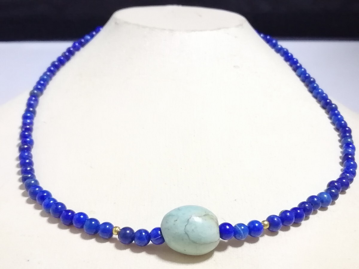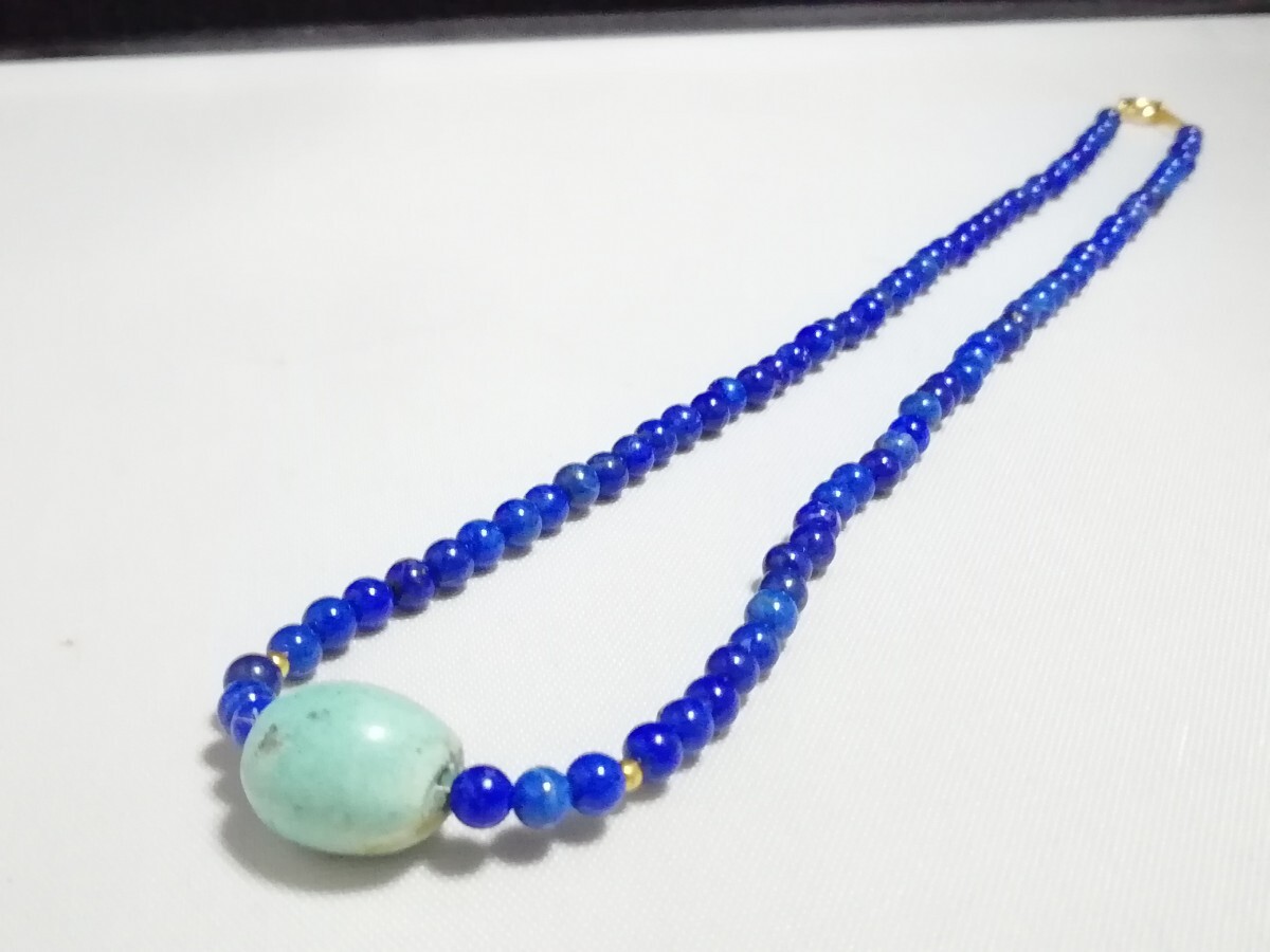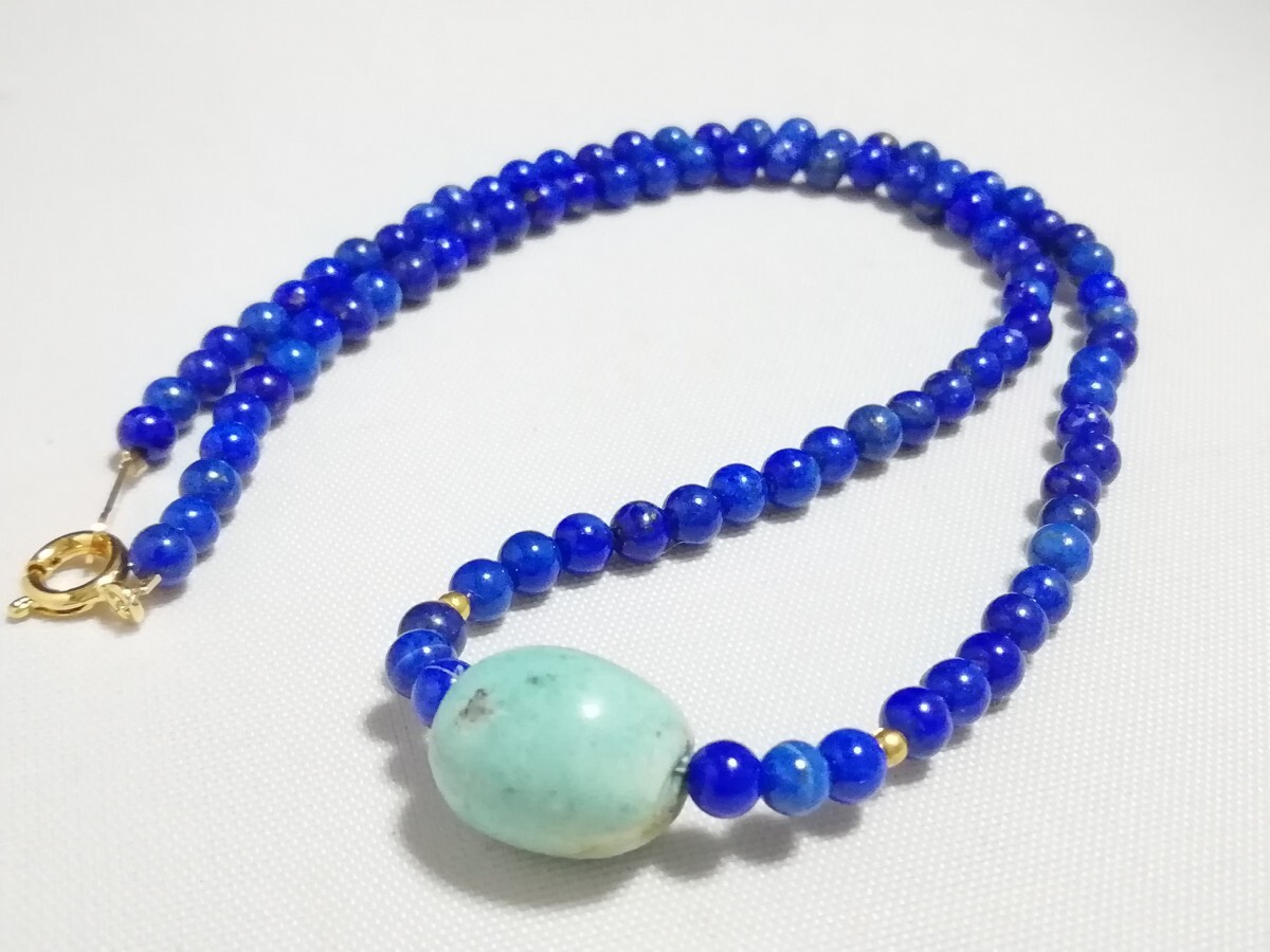 ハイグレード天然ラピスラズリ&アリゾナトルコ石ワンポイントデザインネックレス