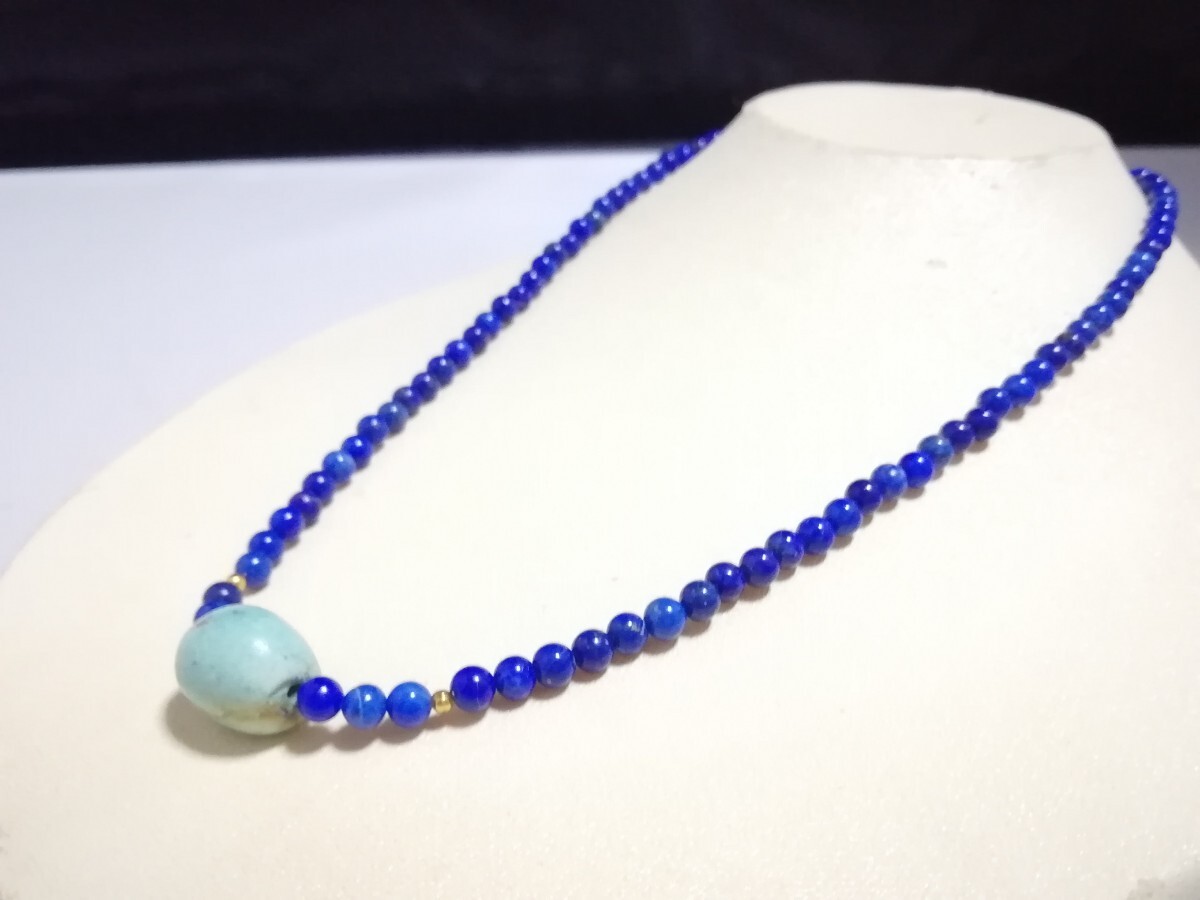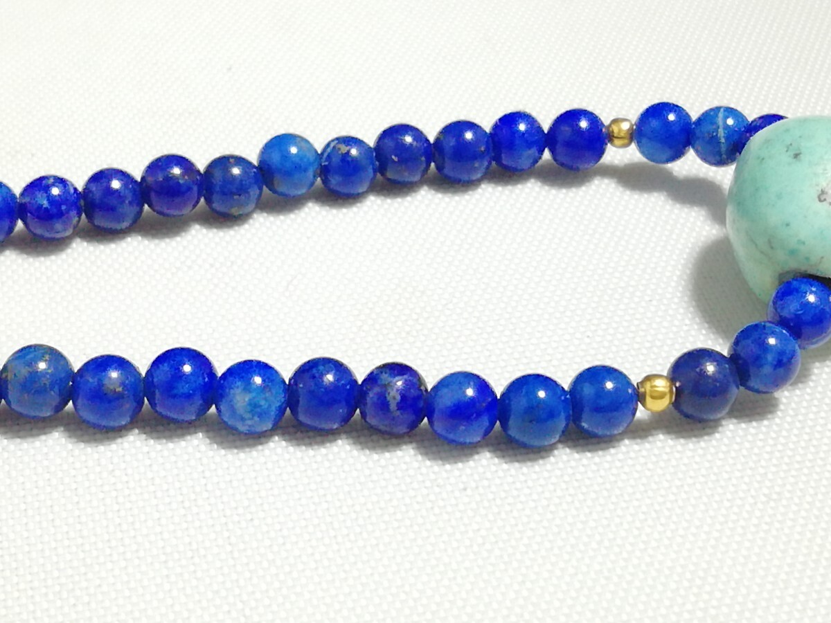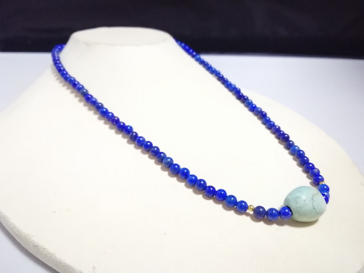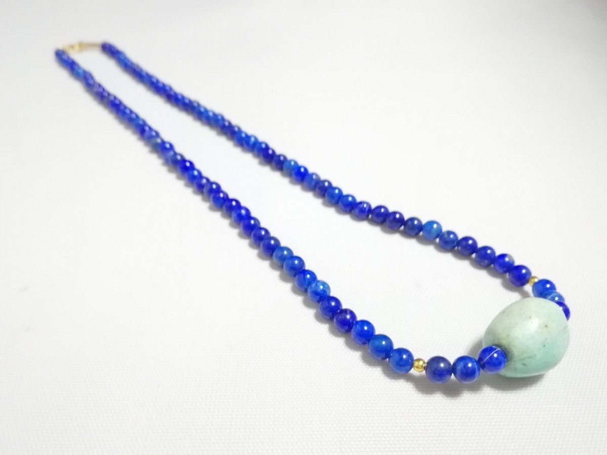 ハイグレード天然ラピスラズリ&アリゾナトルコ石ワンポイントデザインネックレス