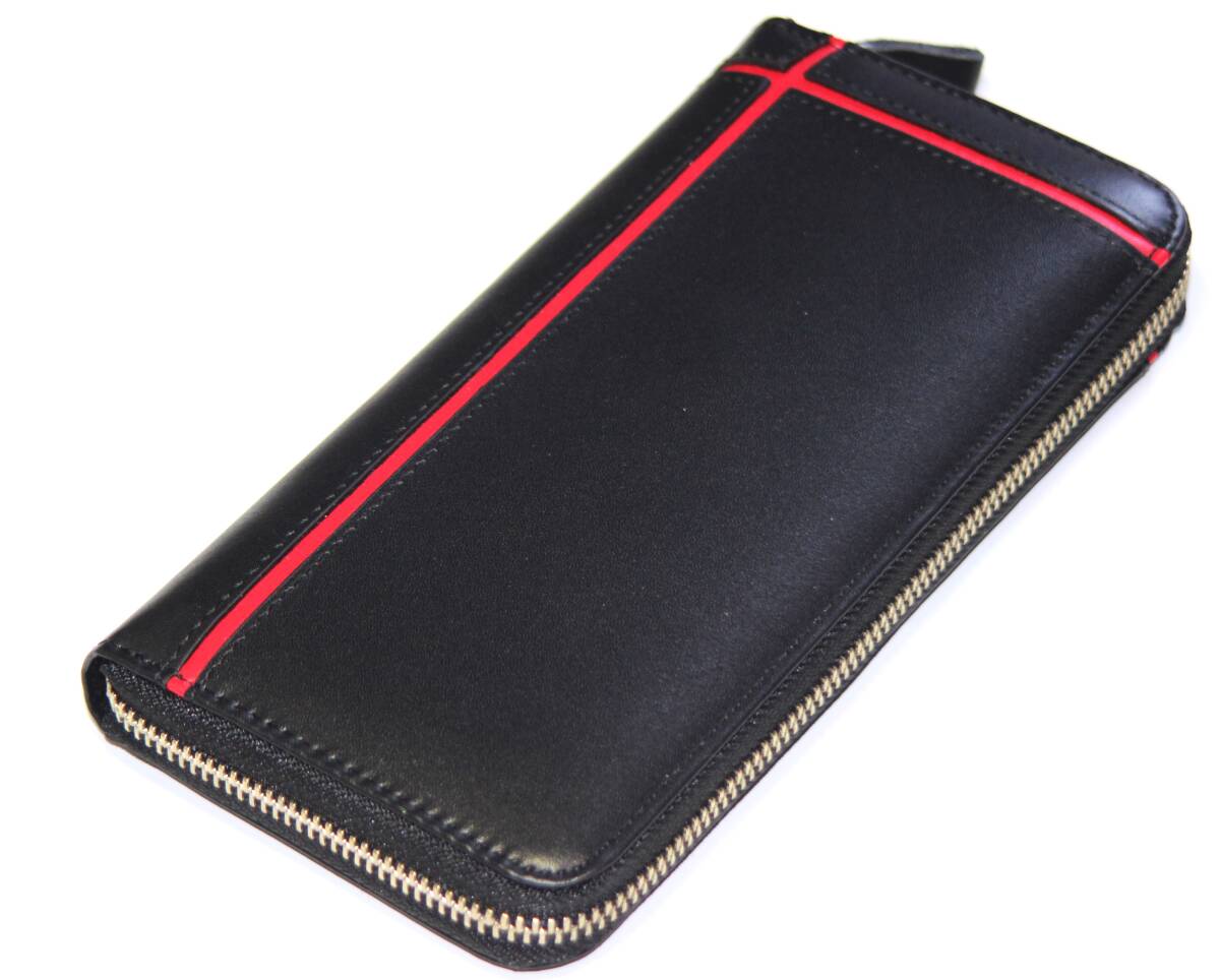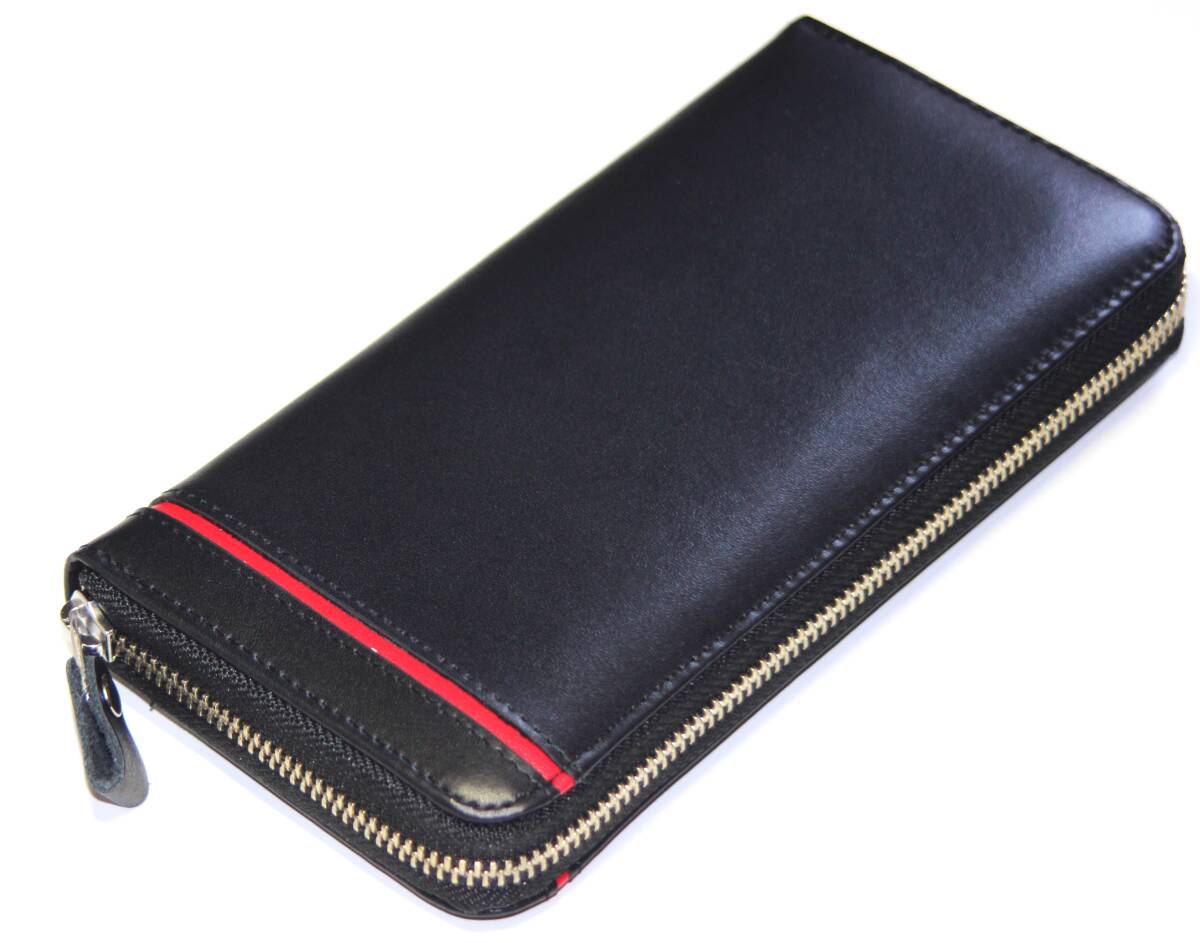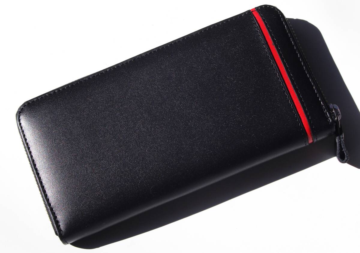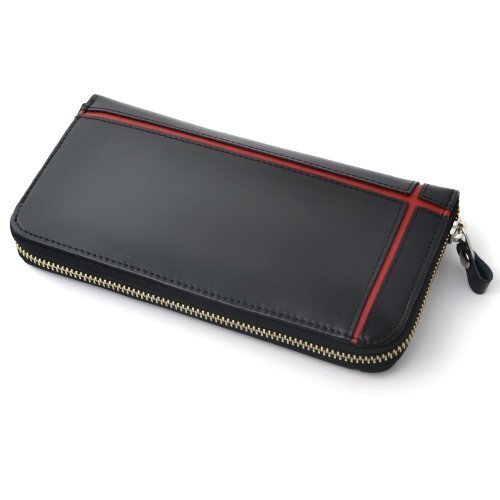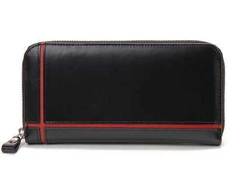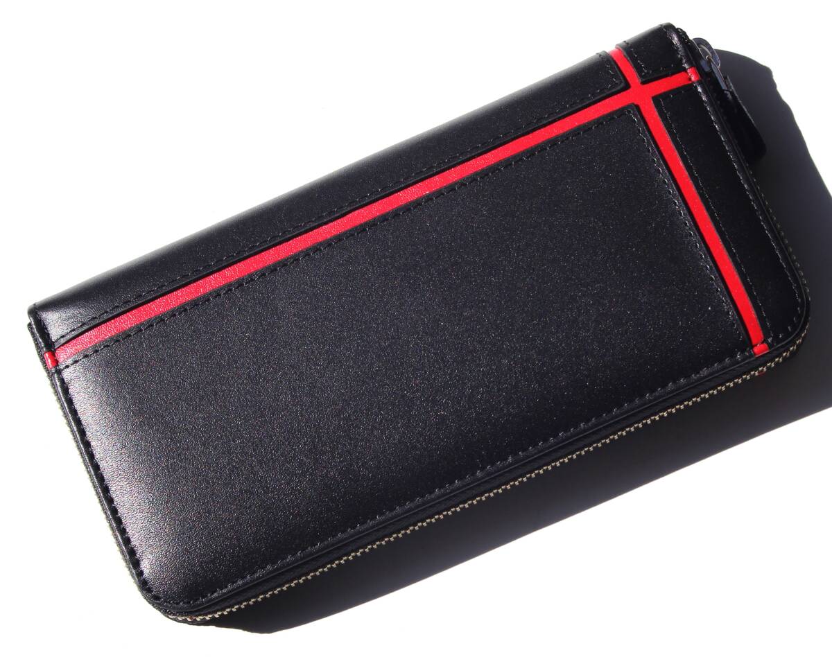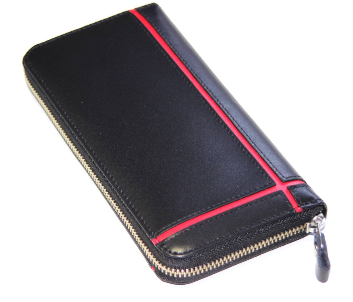 【1点限り赤字大特価】【送料込み】【期間限定】【新品】【税込み】牛革スムース加工 レッドクロスライン ラウンドロングウォレット 黒