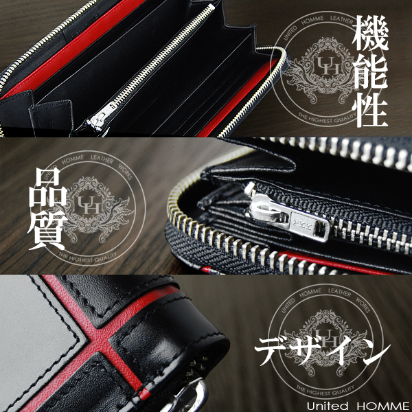 ■商品名:長財布   男女兼用  メンズ   United HOMME   馬革  牛革   クロスライン  YKK社製      ラウンドファスナー