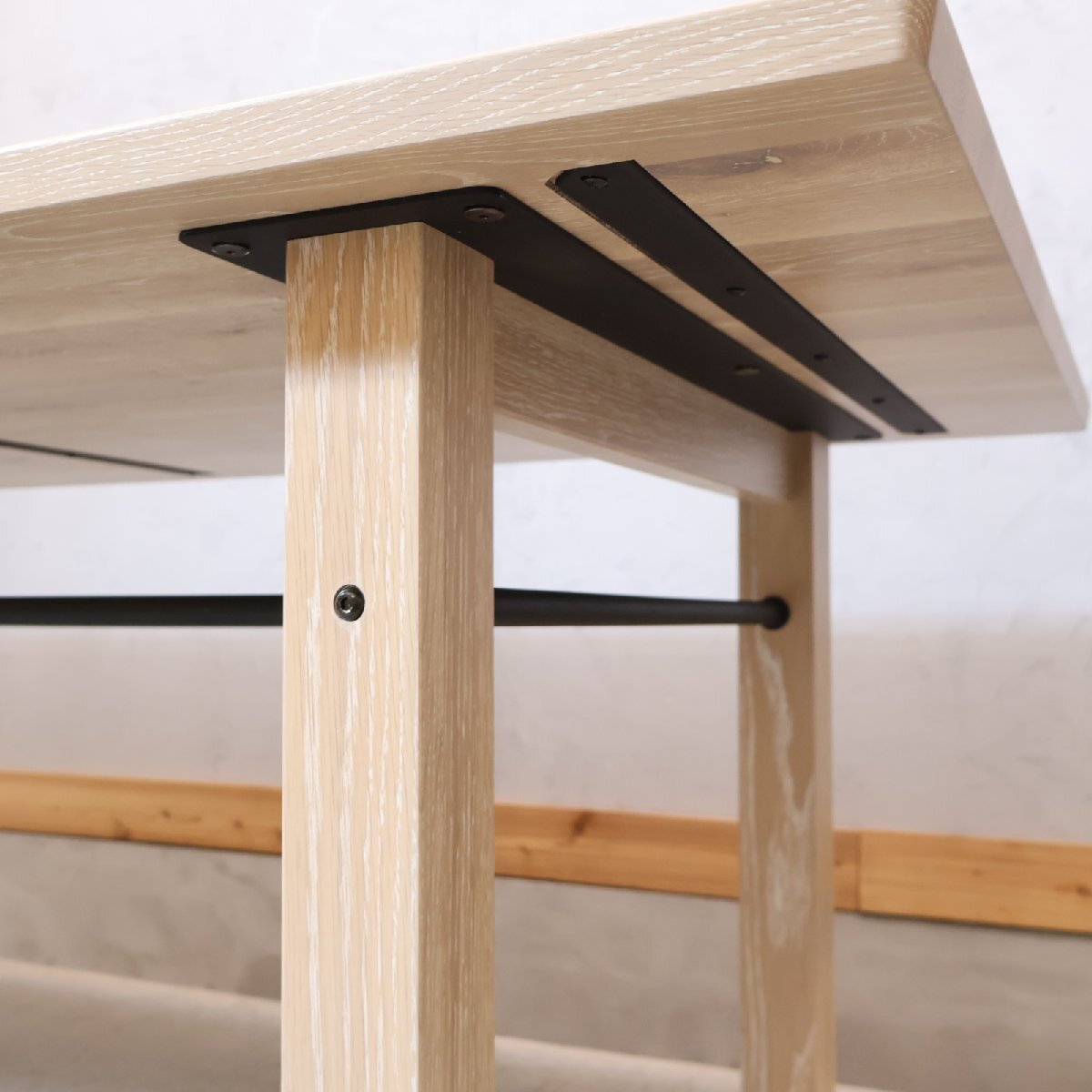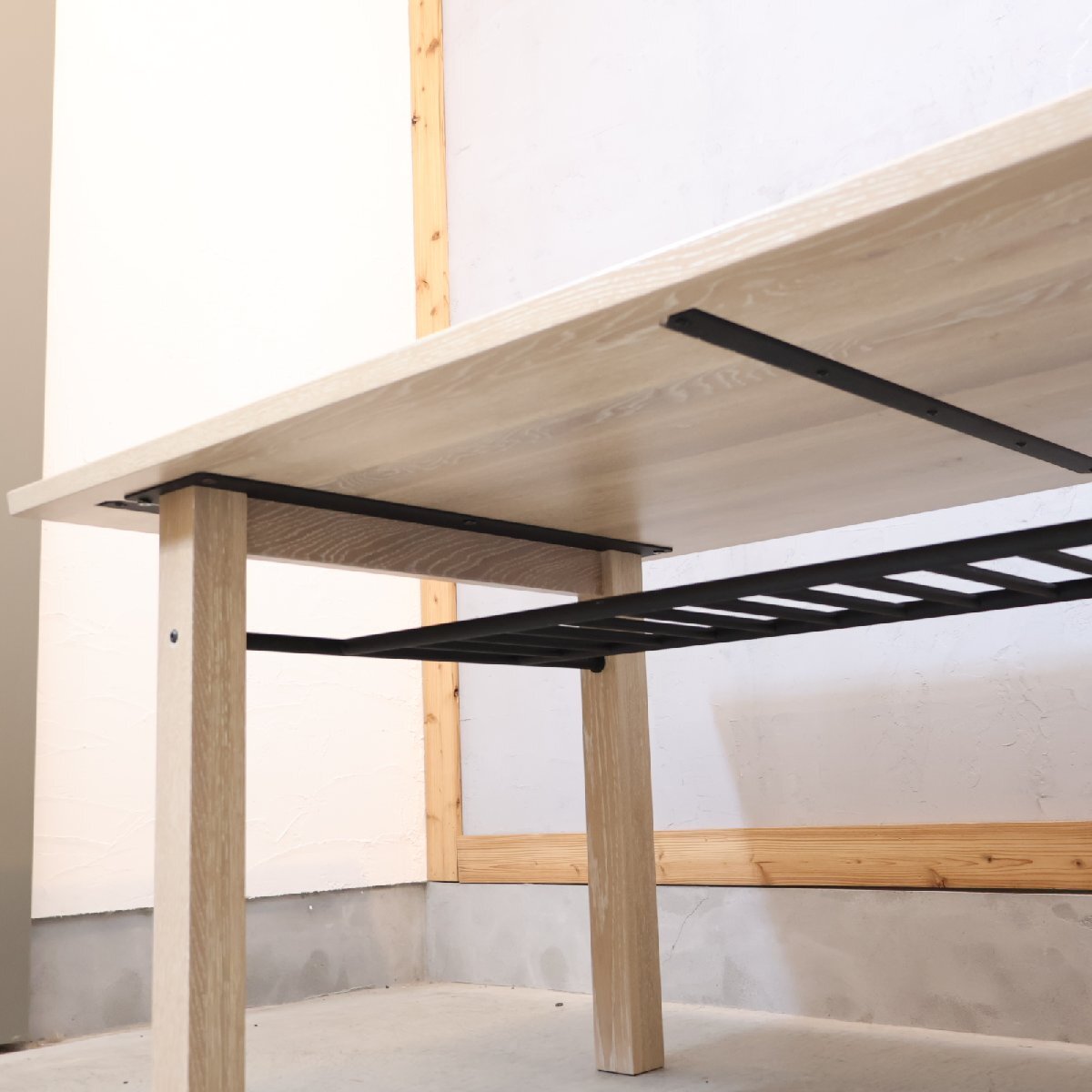 ミズナラ無垢材とスチールの異素材の組み合わせは