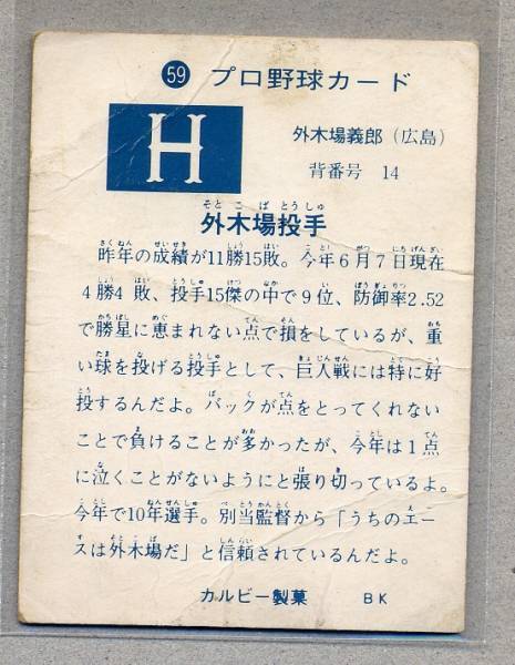 ■73カルビー #59 外木場義郎 Cタイプ 広島 です。