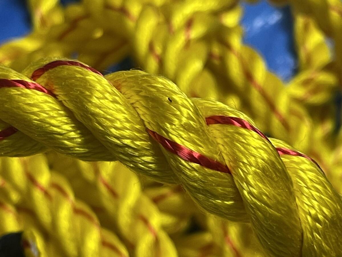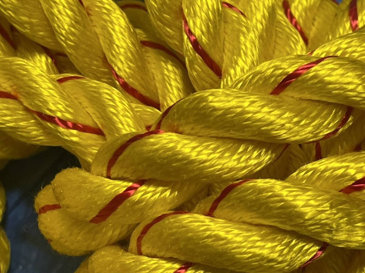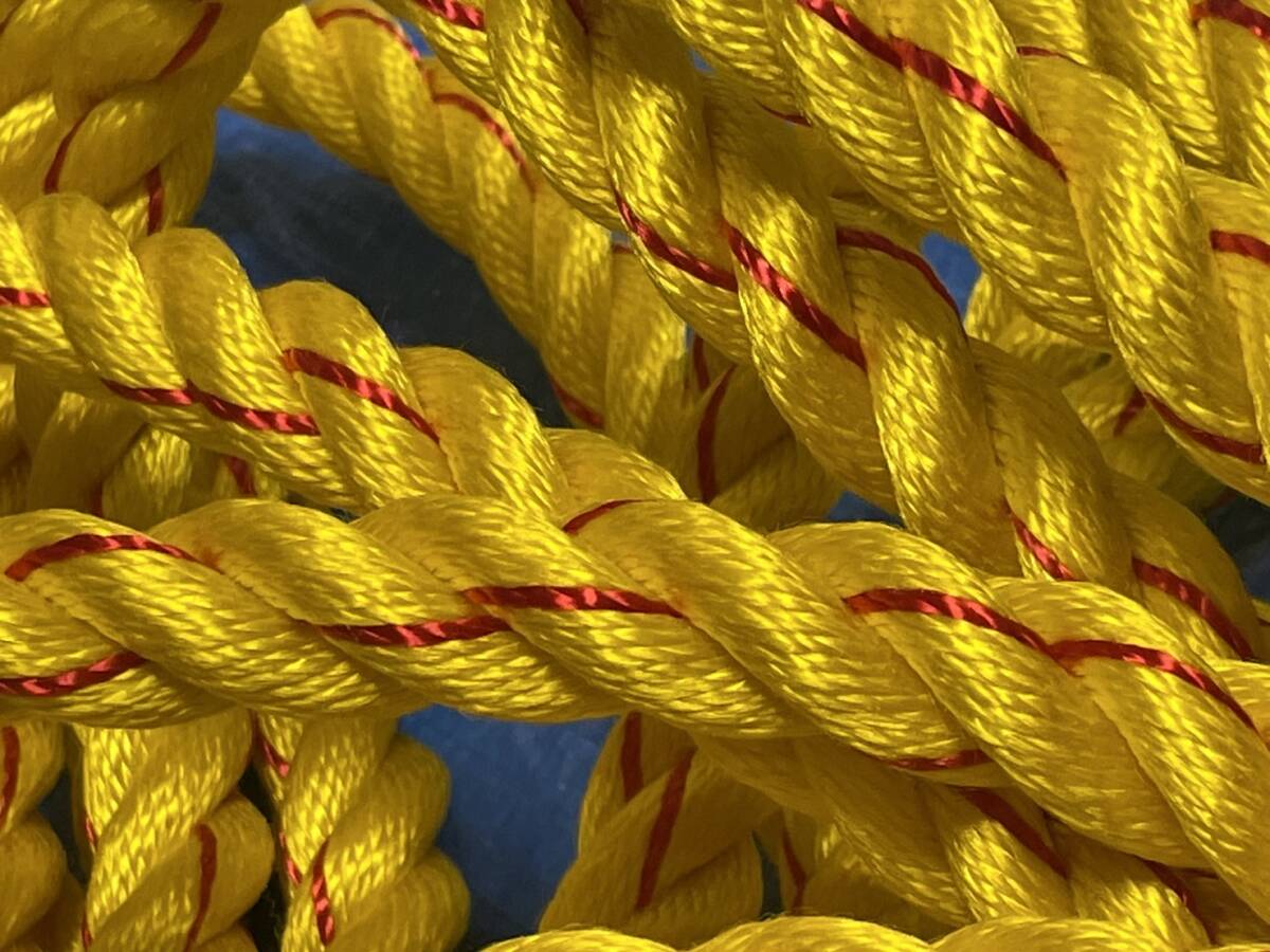 激安・新品・国産☆2巻セット//黄色・赤色入り/ニューテトロン 三つ打ちロープ 芯あり◆16mm 2.2Kg
