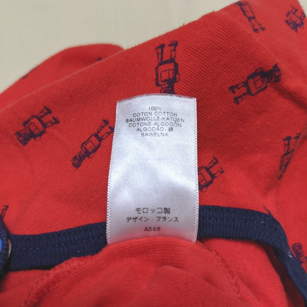 オレンジの地にロボットをデザインした可愛らしいカバーオールです。