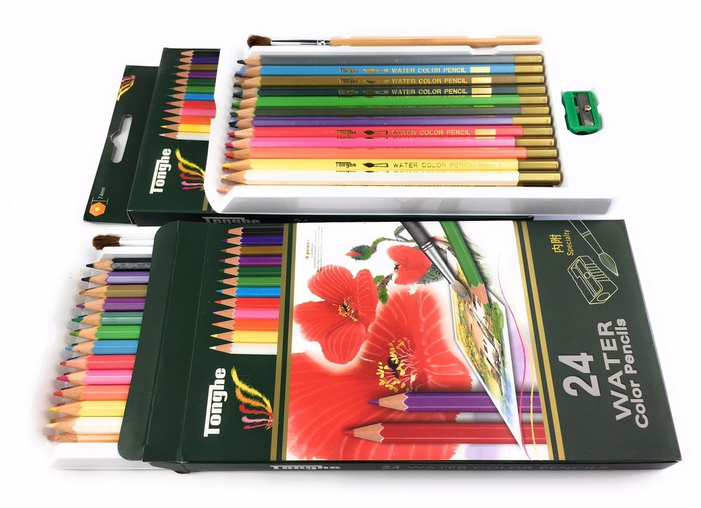 水で水彩画になる鉛筆 【24色 筆・鉛筆削り付】 水彩色鉛筆 色えんぴつ 水彩鉛筆 ぬり絵 スケッチ お絵かき 絵画 ステイホーム おうち時間