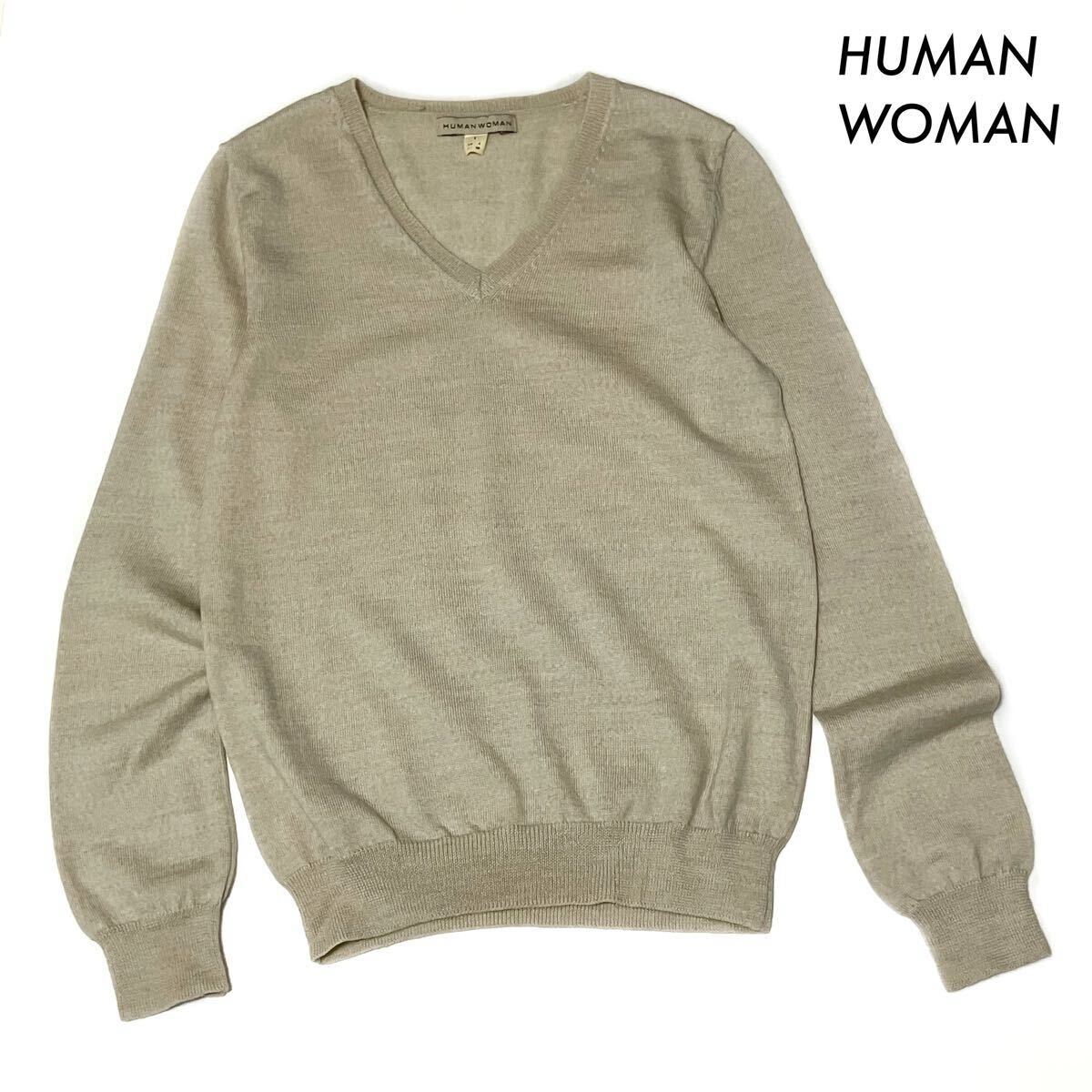 HUMAN WOMAN ヒューマンウーマン★長袖ニット セーター Vネック ベージュ