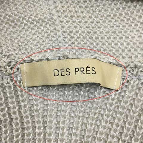 デプレ DES PRES トゥモローランド カーディガン ニット ショールカラー 前開き 無地 長袖 1 グレー レディース
