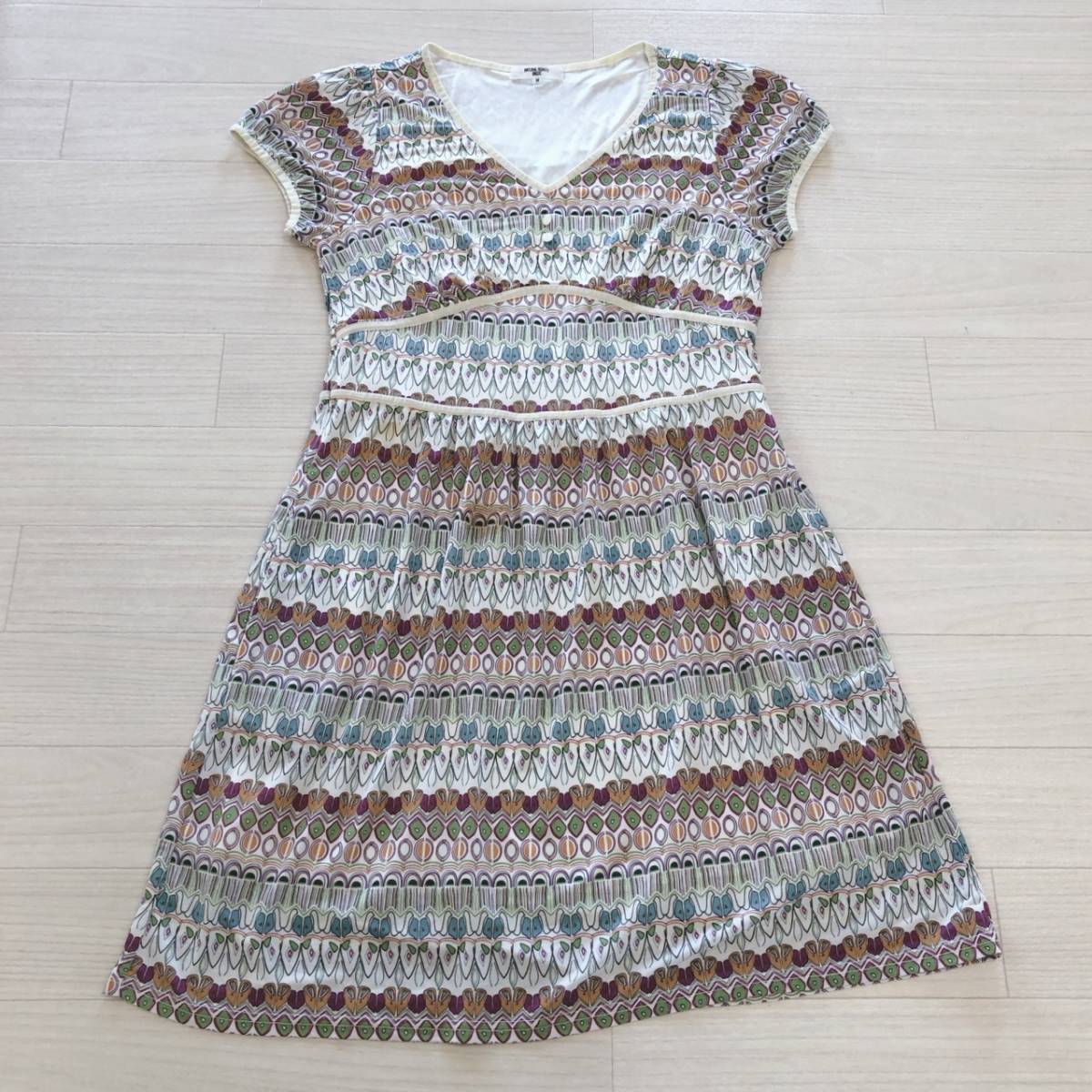 YZ0148 NATURAL BEAUTY BASIC ナチュラルビューティーベーシック レディース ワンピース 半袖 薄手 サイドポケット Mサイズ エキゾチック
