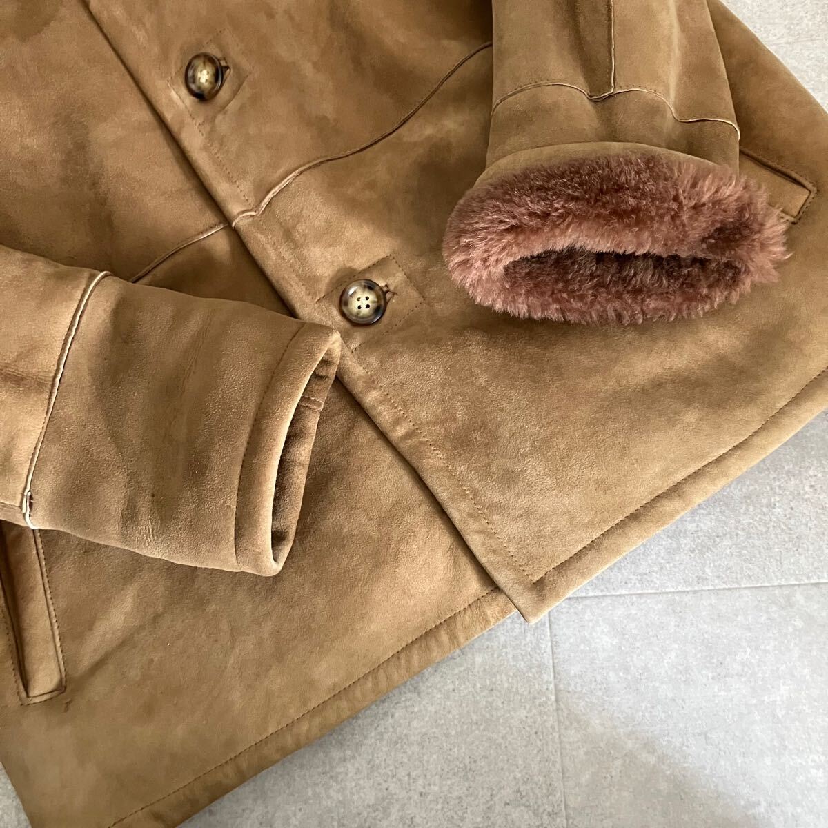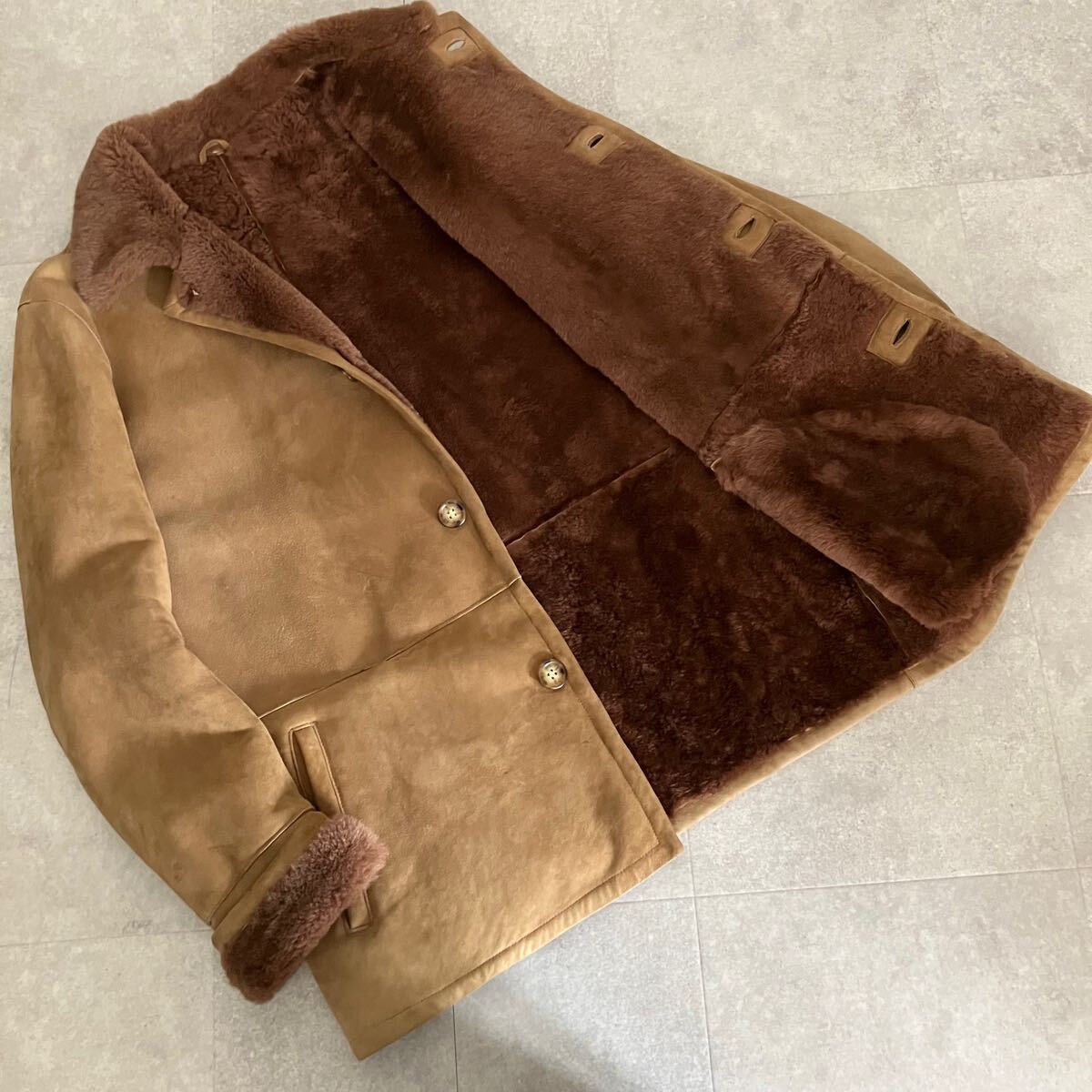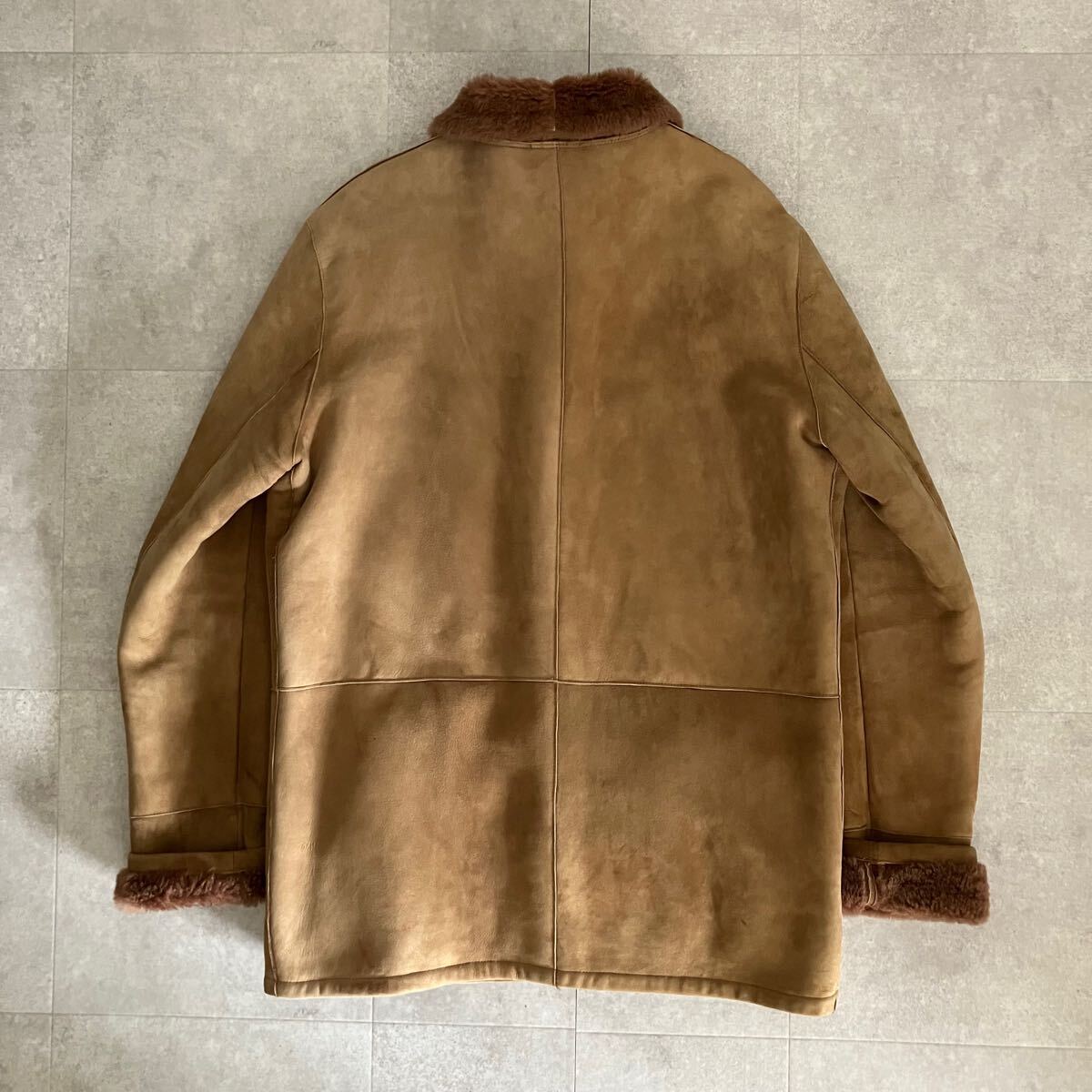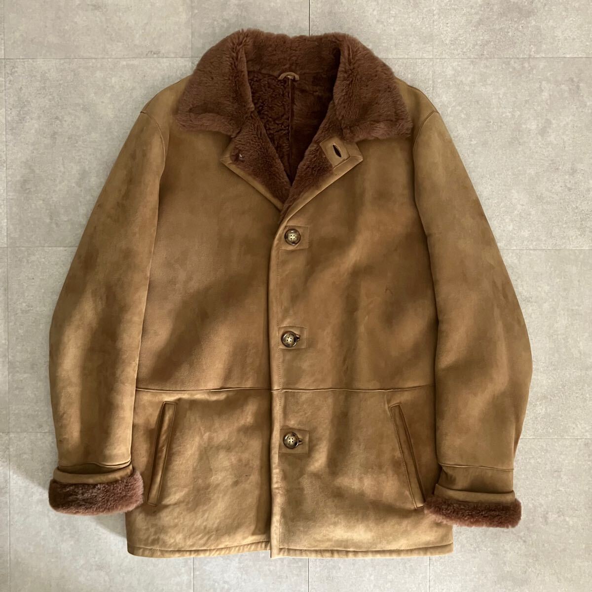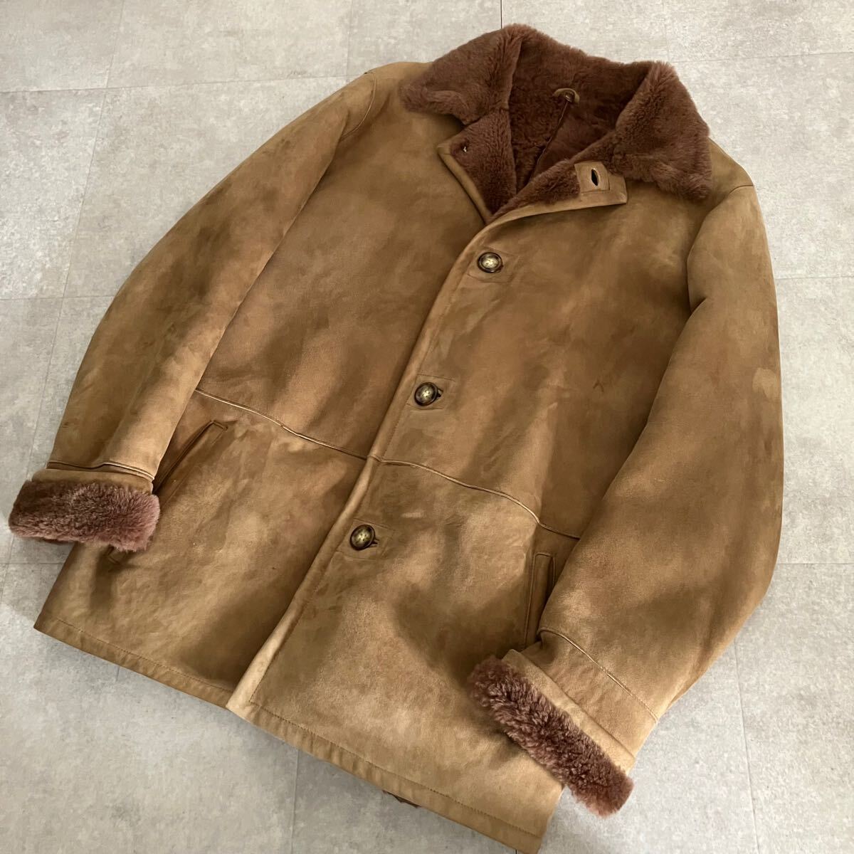 ●【上質】参考定価40万 POZZI MILANO 羊革 リアルムートン シープスキン ジャケット/ランチコート/size46/メンズ/ブラウン系/毛皮