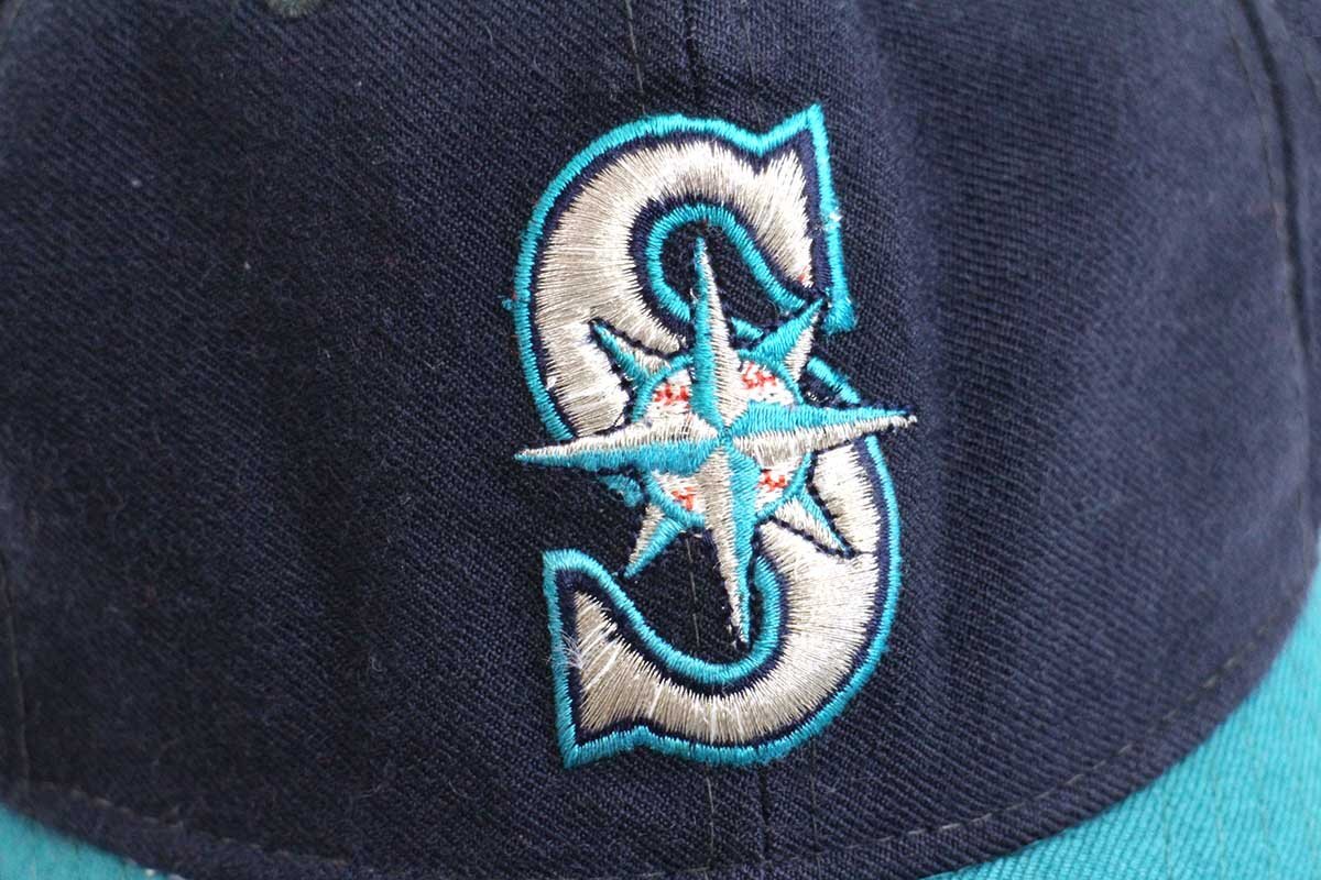 ★90s USA製 NEW ERA MLB Seattle Mariners 刺繍 ウール ベースボールキャップ 紺 7 1/4★オールド シアトルマリナーズ メジャー スポーツ