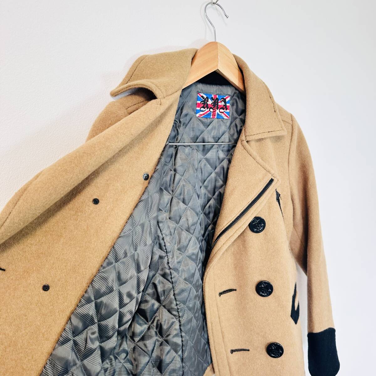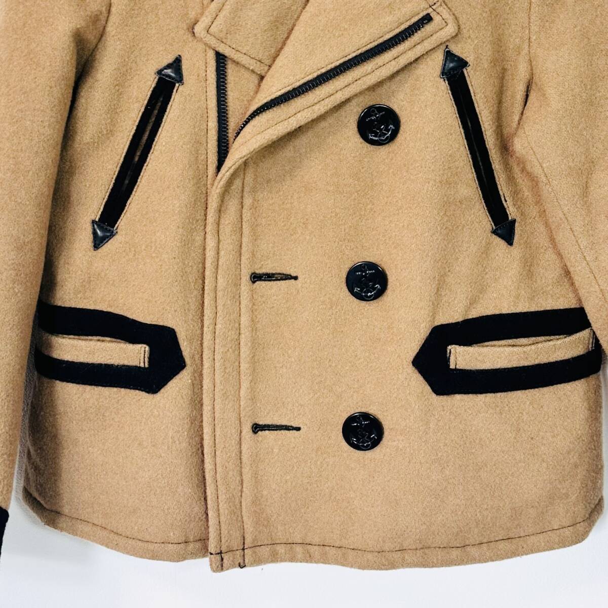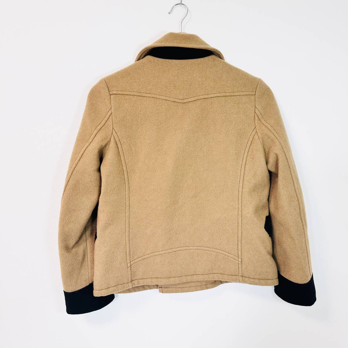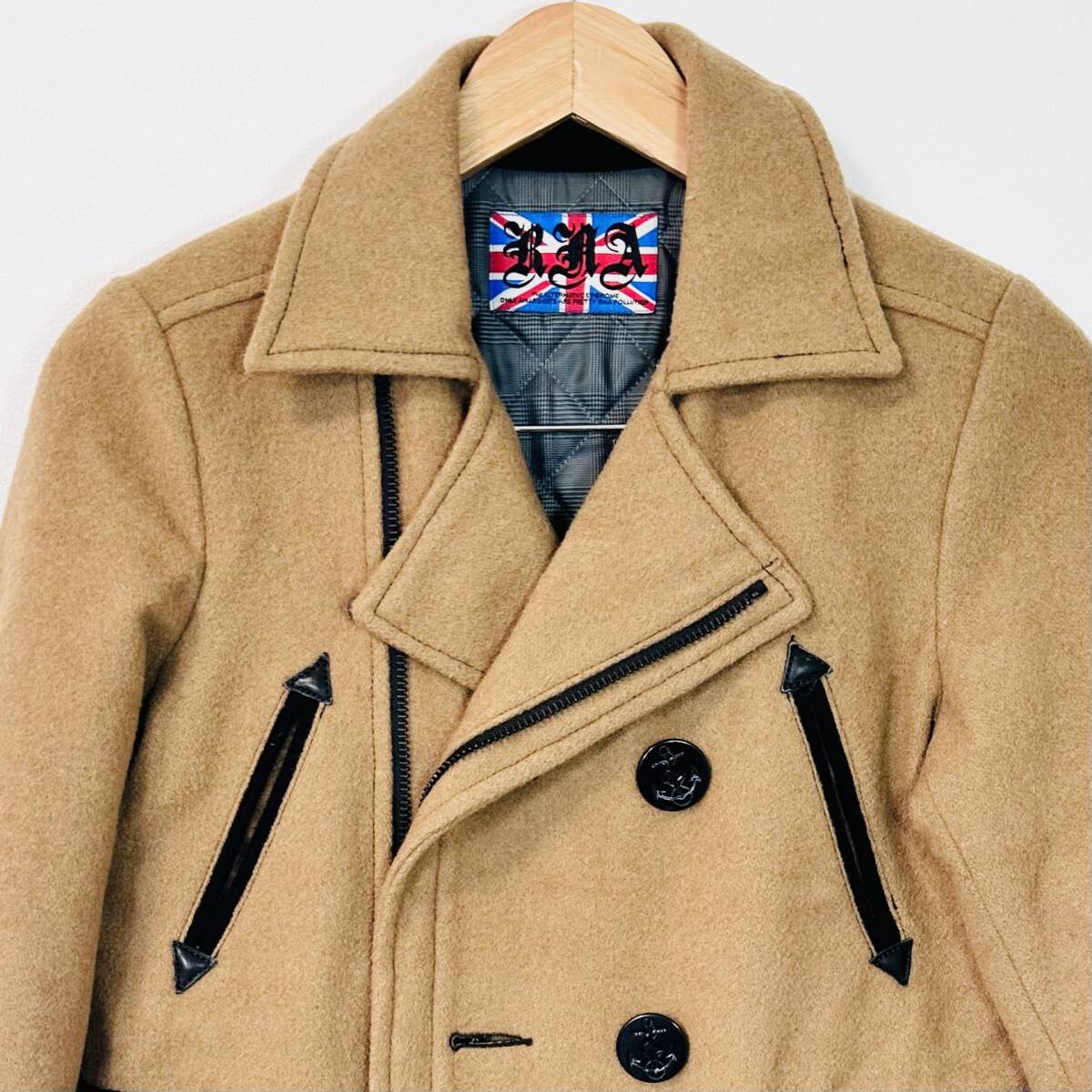 f979ii RNA(アールエヌエー) サイズM コート ダブルボタン 長袖 ウール 牛革 ベージュ×ブラック レディース ポリエステル100