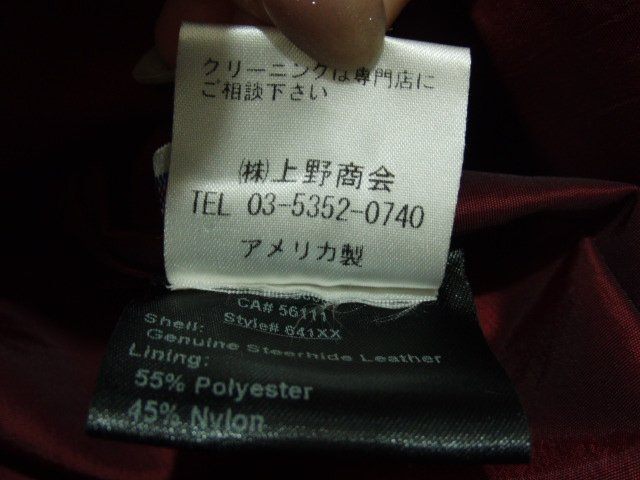 状態 | SCHOTT 立襟シングルライダースジャケット641XX 7009/上野商会です。 全体的に使用感とスレがありますが、大きなダメージは無く中古並の状態です。 |