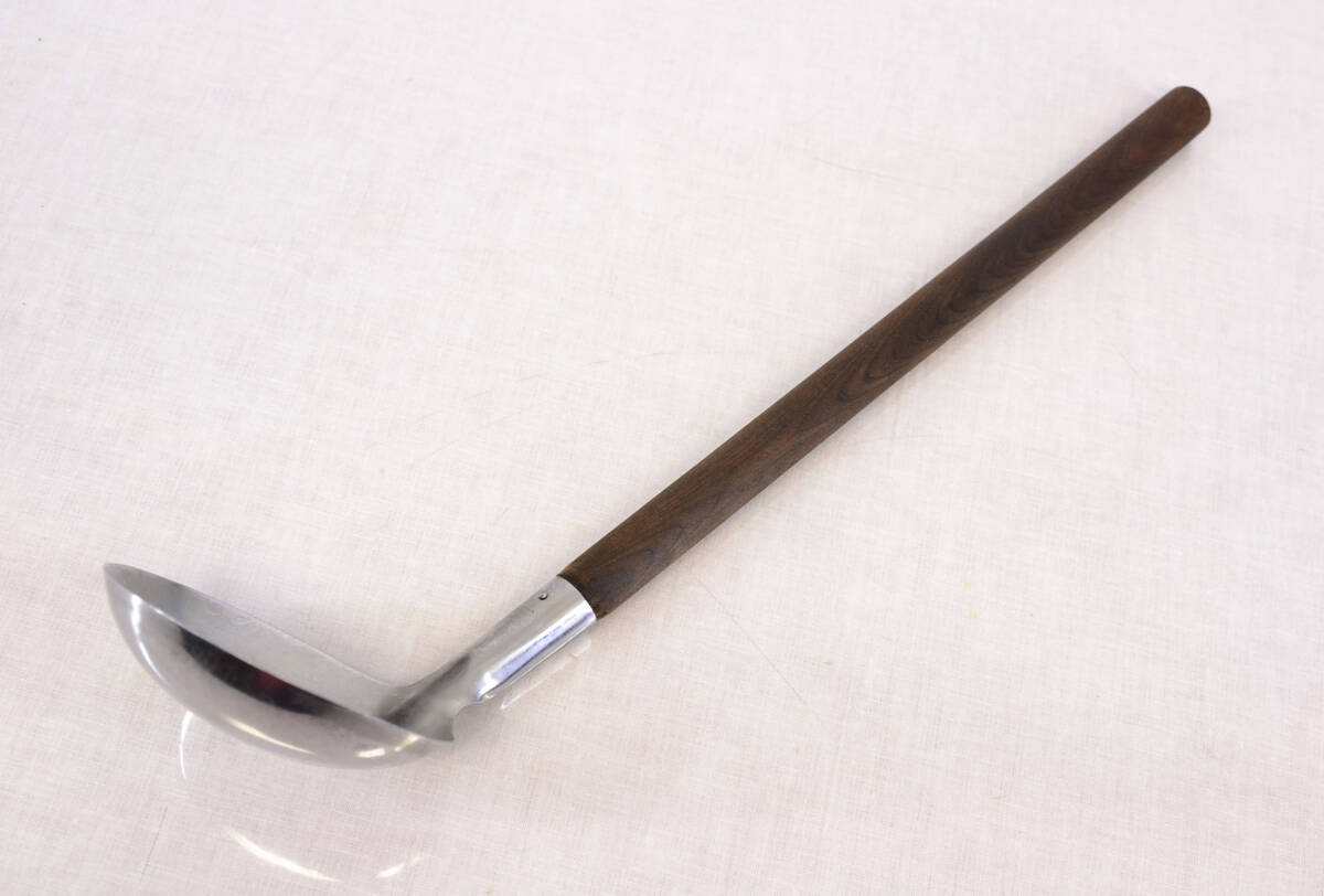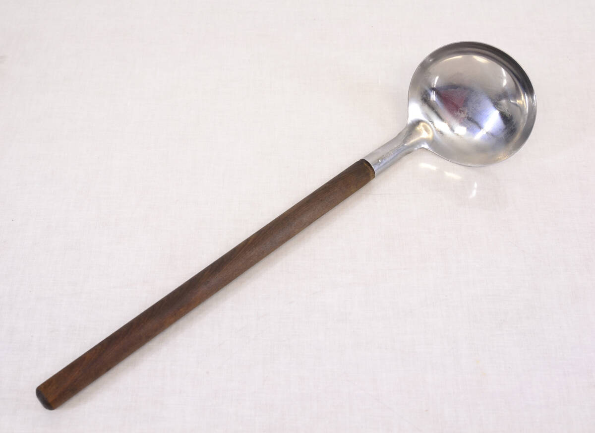 ちょっと長めのお玉 レードルです。持ち手は木製です。家庭用台所洗剤にて洗浄済み、自宅保管の中古品です。