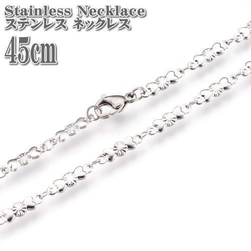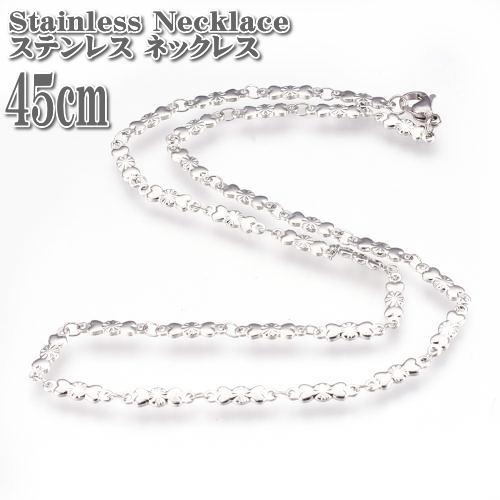 ステンレスネックレス フラワー&ハートチェーン 45cm シルバー Stainless ステンレス ネックレス フラワー ハート チェーン Silver | |