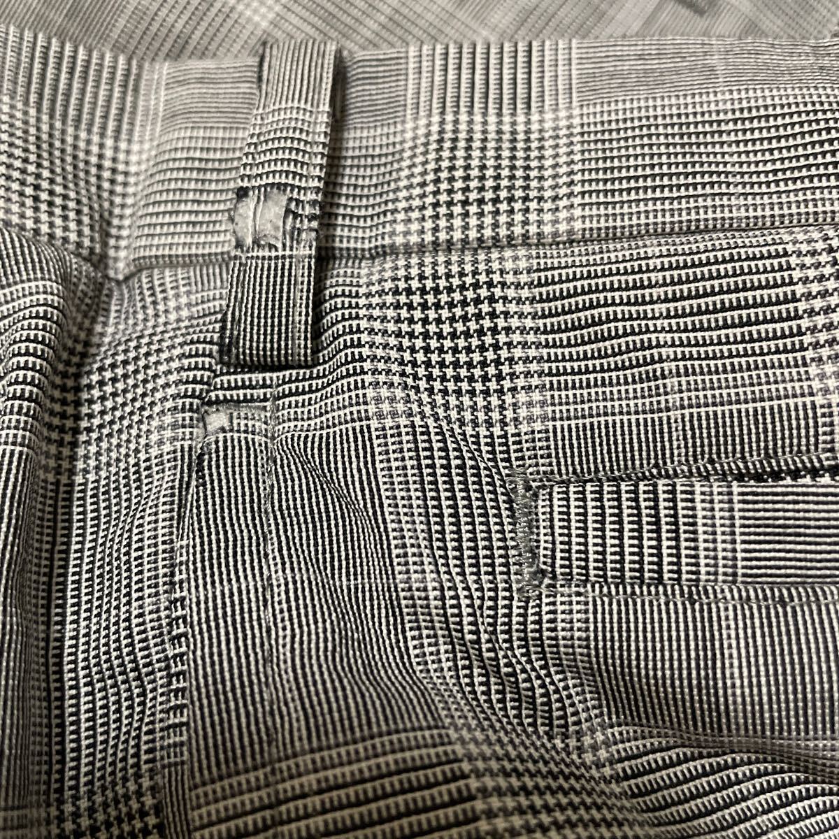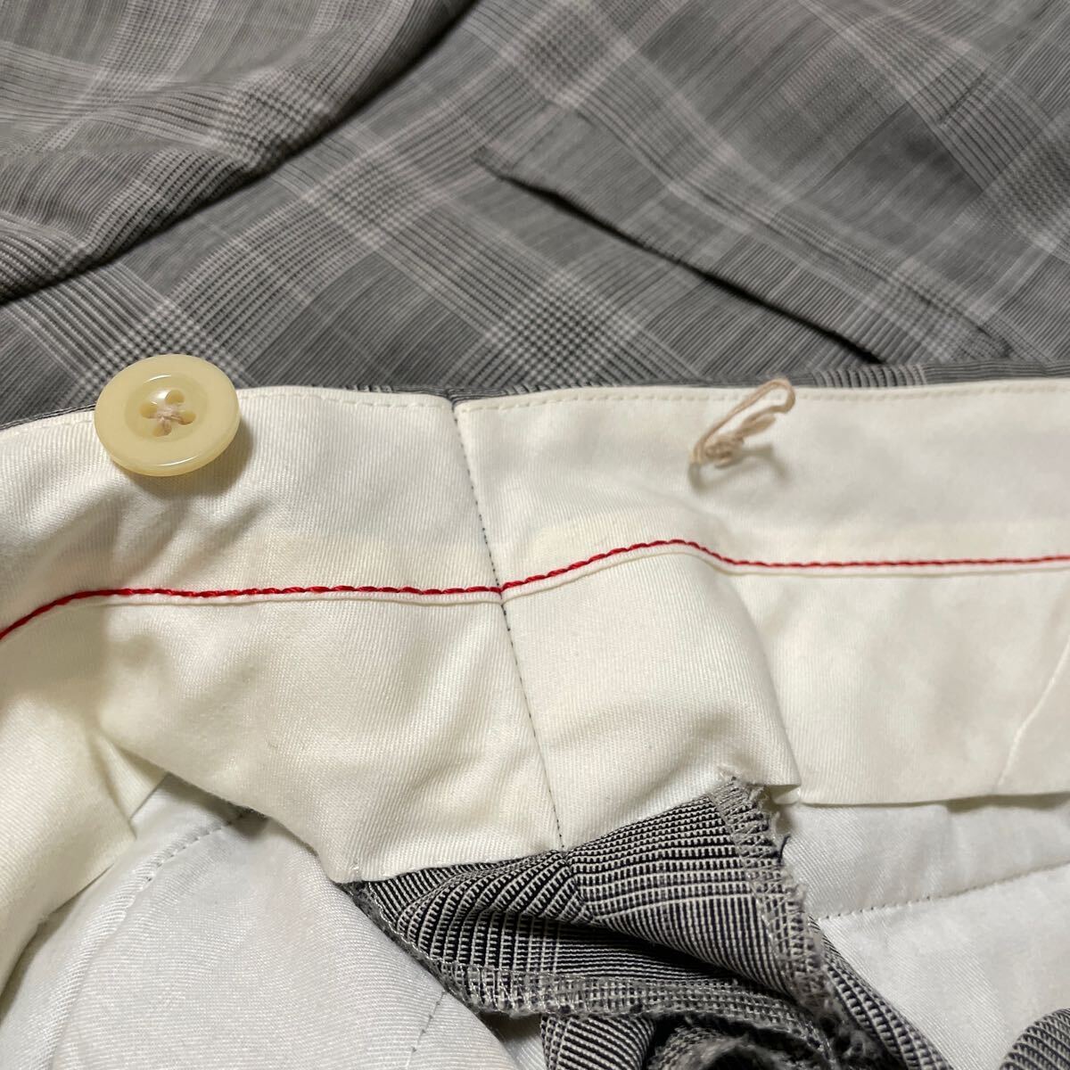 写真9枚目10枚目にあります通り、サスペンダー用ボタンが一つ欠品しているのと、ベルトループにスレがありますが、通常の着用ではあまり問題にならないかと思います。