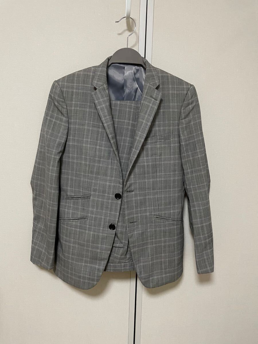 2つボタン、センターベント、袖は3つボタンで本切羽にはなっておりません。