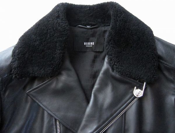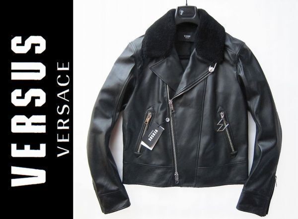 ◆VERSUS VERSACE ◆着脱可ムートンファー付ラムレザーライダースジャケット50 新品◆本物