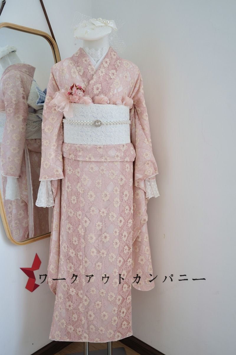 強くお勧め★レースの小紋着物 成人式 163CM 成人式 総レース 仕立て上がり単品