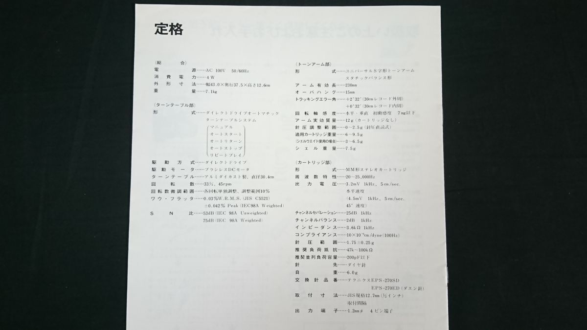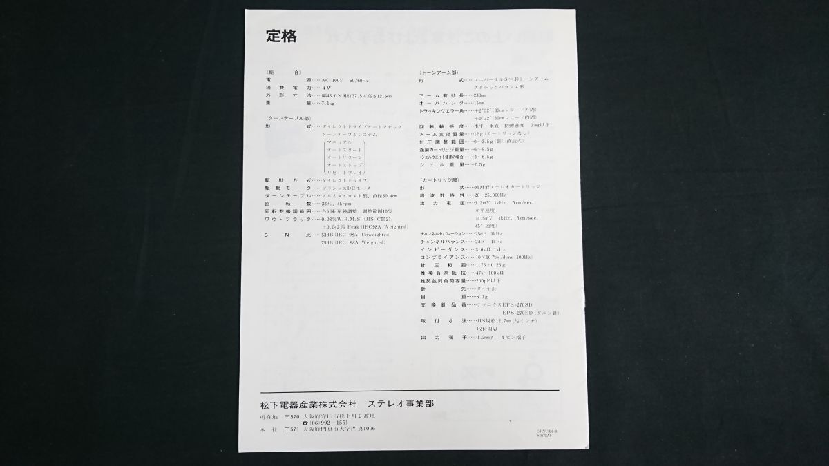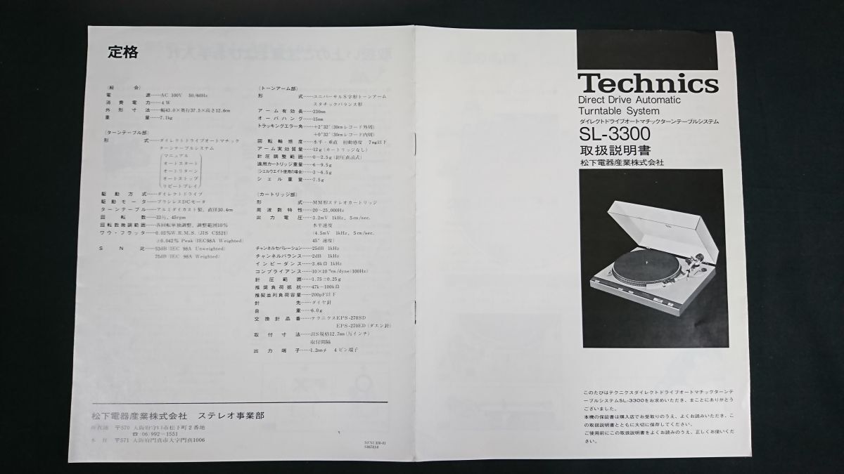 | 【昭和レトロ】『TECHNICS(テクニクス) ダイレクトドライブ オートマチックターンテーブル システム SL-3300 取扱説明書+商品説明カード』1982年頃/松下電器産業株式会社 | |