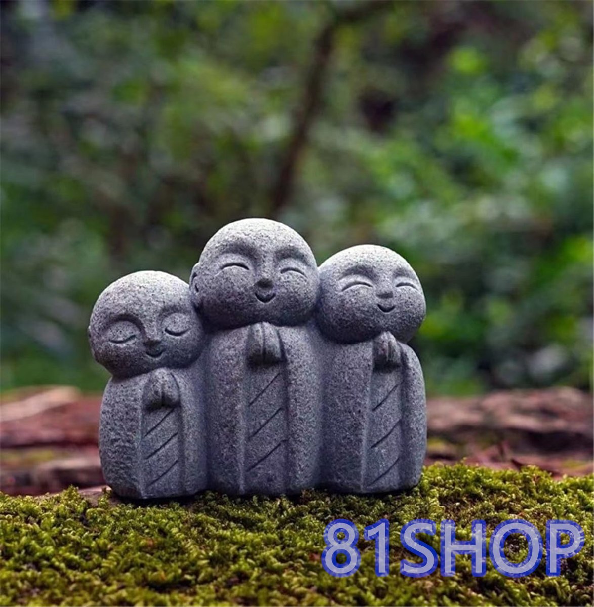 【店主からの伝言】芸術家が京都のお寺を見学していると、かわいい小僧さんと地下菩薩の石像を見つけて、面白くて美しいと感じました。帰国後、砂岩合成技術を用いて美しい小物を製作した。小柄な地宝菩薩で、手のひらの中に入れられています。
