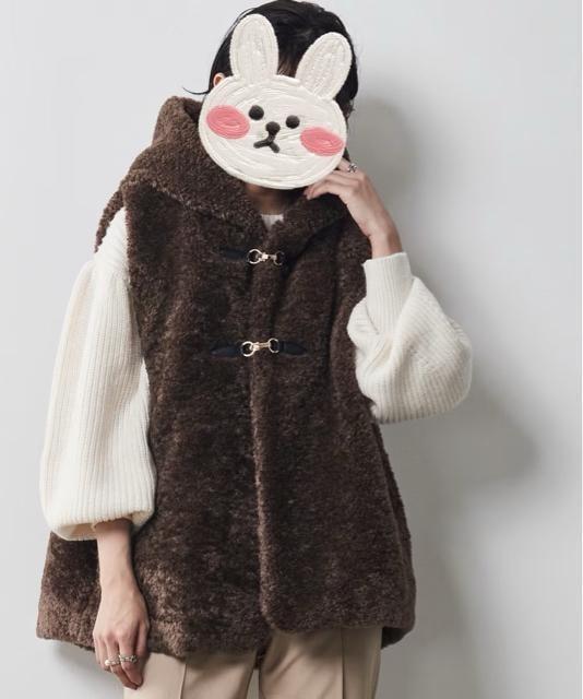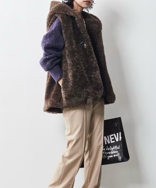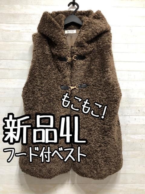 新品☆4L茶系♪ボリューム満点!オシャレなもこもこベスト〇A498
