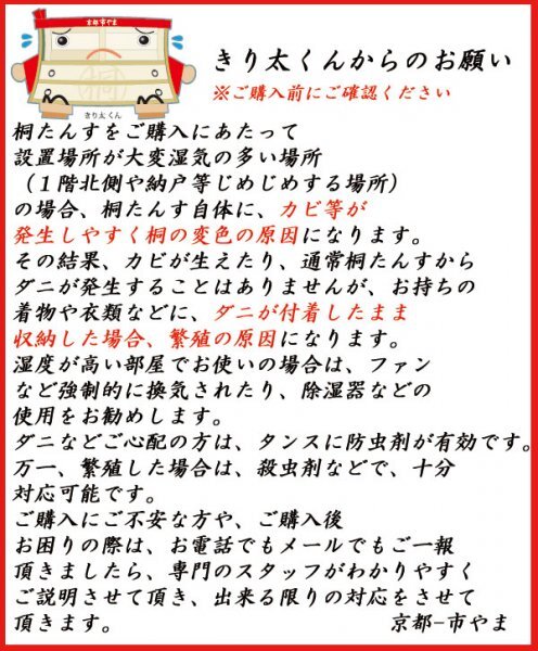 | 特徴 | 他店にはあまりみられな肥前桐民芸6段総桐タンスです!! 桐の特性により大切な衣類を湿気や虫、カビから保護します。 本体・引き出しまで厳しい社内基準を満たした良質で本物の桐無垢板を ふんだんに使用しております。 なおかつ、天板・側板の厚みも15mmを使用しており 背板底板にも4MMの桐合板を使用しております 総桐仕様ですので、強度が違います! 接着剤にもこだわりをもっており、フォースター(四つ星)の安全基準を 誇っている接着剤を使用しております! 引き出しの中にもこだわりで面取りといって、 木の表面や角を削ることによって引き出しを開けた時の美しさが違います 6段引出し・各1段ごとにタトウ紙を折らずに約2~3枚収納できます。 (生地の厚みにより違いがあります。) クローゼット収納としても利用できます。 |