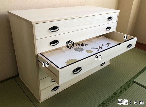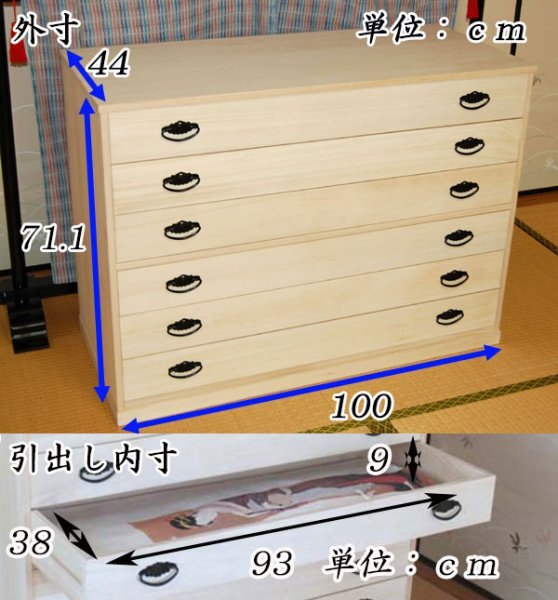 引出し・・・ 桐天然木無垢板13mm 背板底板・・・4mm桐合板 |