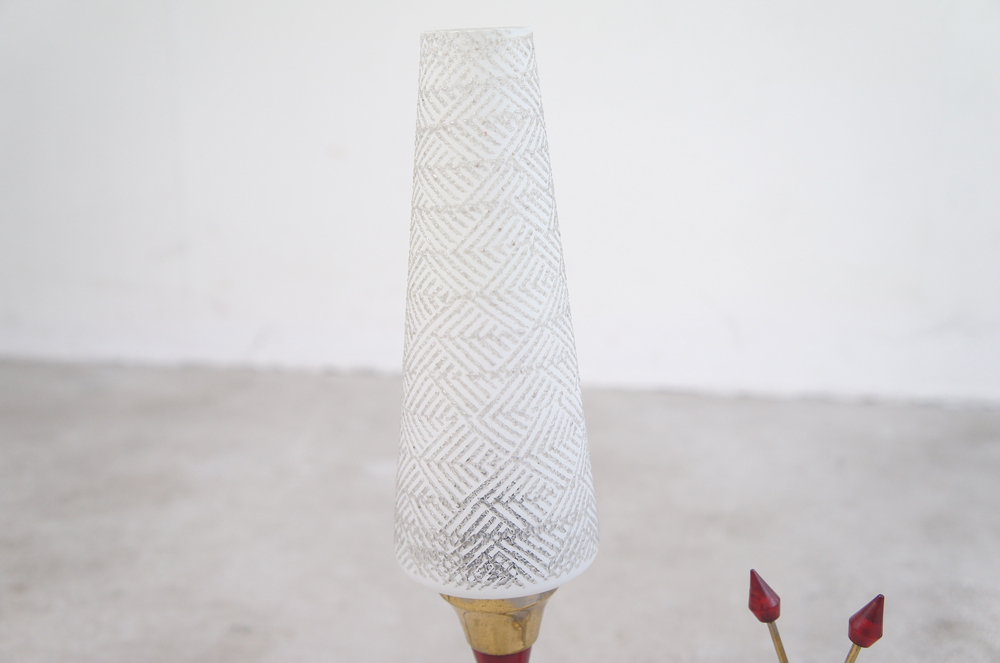 ルビーレッドの装飾がアクセントとなり印象深いデザインランプ。