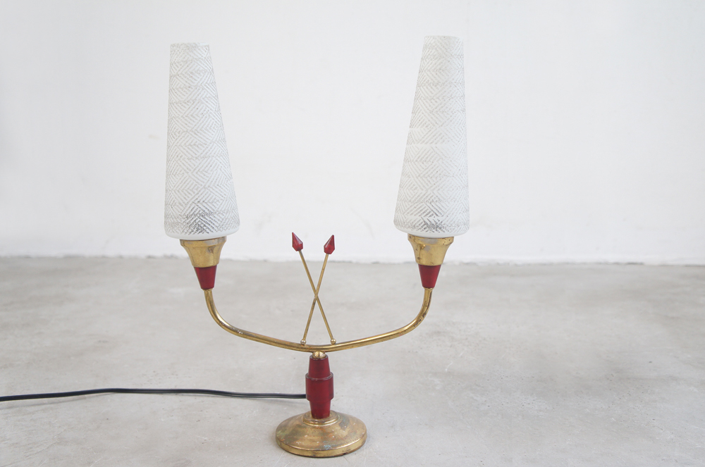 1950's フレンチミッドセンチュリー ヴィンテージ 2灯 テーブルランプ ②/スティルノボ/1950年代/モダニズム/フランス/デザイナー/幾何学