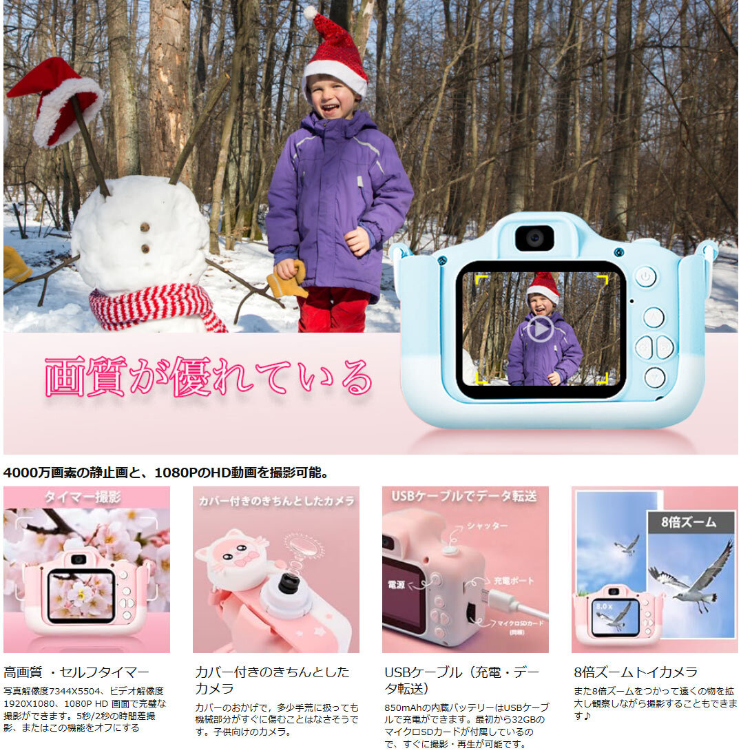 新品★Pinguma キッズカメラ 超 子ども用デジタルカメラ トイカメラ/写真/動画/8倍ズーム/タイマー撮影/IPS液晶/メモリーカード付/ブルー