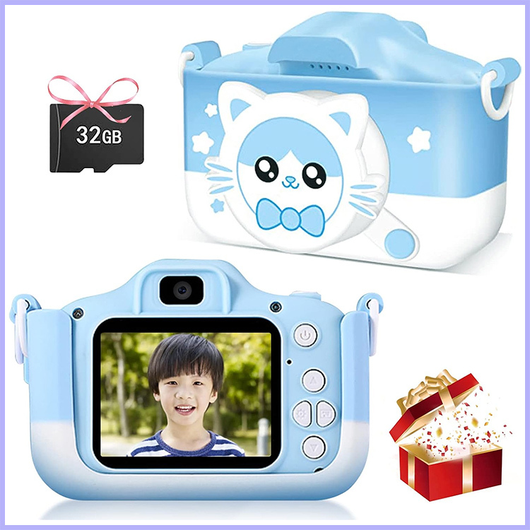 ★セット内容:カメラ本体、かわいい猫型のカメラケースとレンズキャップ、USB充電ケーブル、32GBのmicroSDカード(カメラに挿入済み)、ストラップ、日本語取扱説明書、外箱
