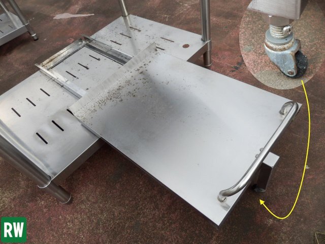 | 状態 | 中古品 汚れ、傷、スレ、サビ等ございます。部分的にサビ、傷が集中しています。 天板の隅にφ20mmの穴あり。炊飯台はスムーズに引き出せます。 | |||||||||