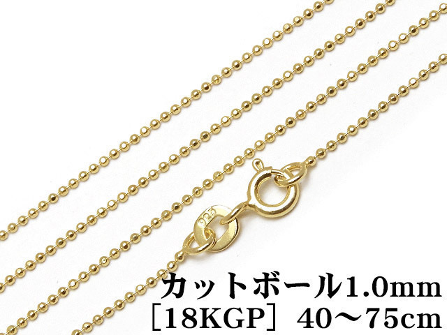 シルバー925(スターリングシルバー)のネックレス カットボールチェーンの1mm[18KGP]になります。