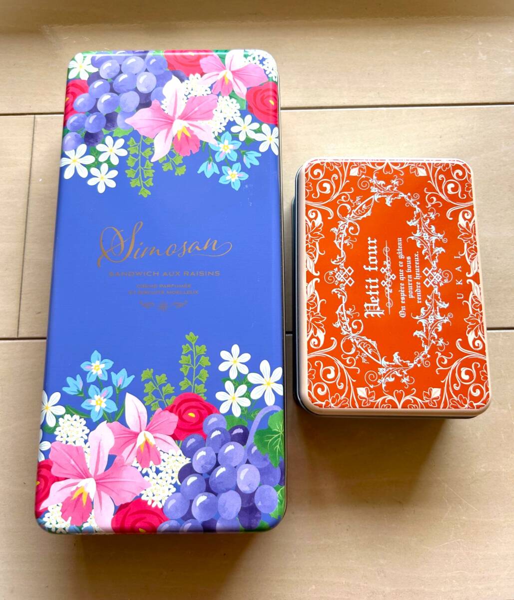 美品「フールセック・アトリエうかい」サイズ約13.5×9.5㎝高さ5.5㎝、「レスポワール・神戸風月堂」サイズ約25×12㎝高さ5㎝、2個セットです。