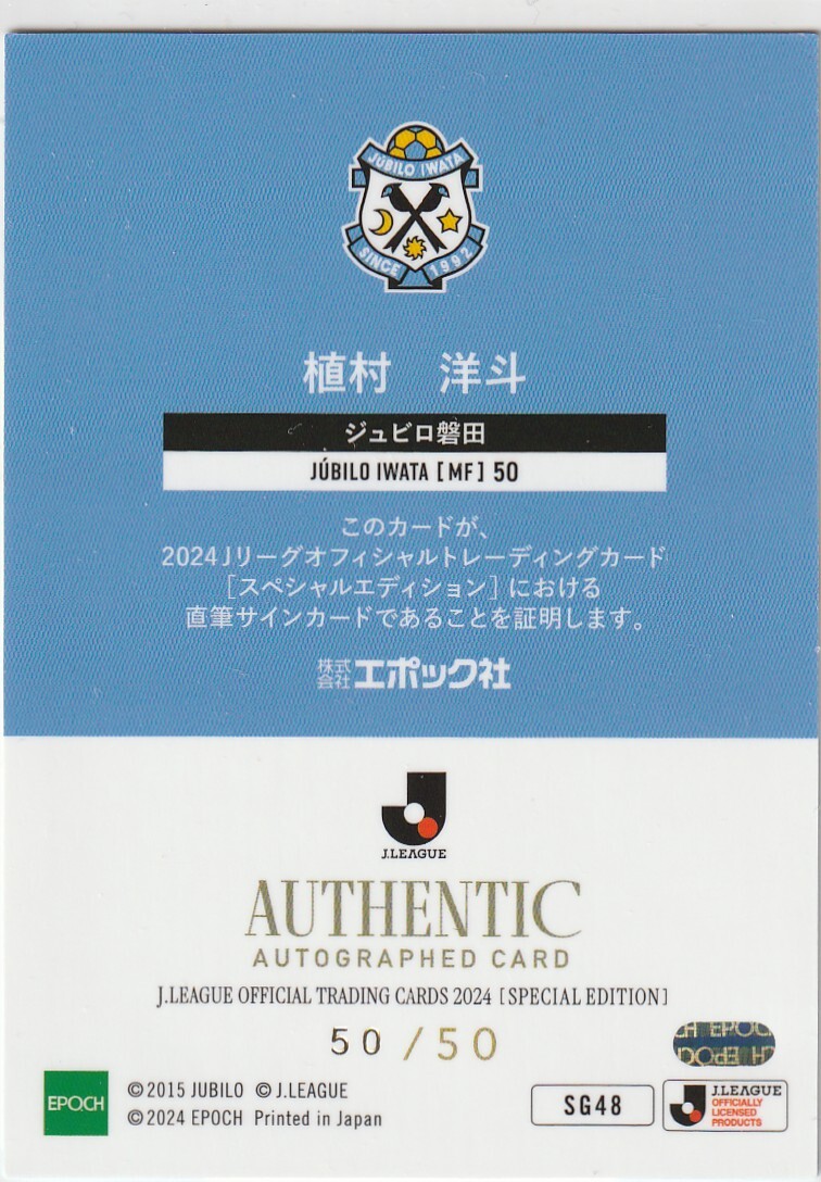 パックから出る直筆サインカードでシリアルナンバーが入っています。シリアルナンバーは50/50のジャージーナンバーで、ラストナンバーです。画像にはスキャナーの埃や縦線が写っている場合がありますが現物は美品です。