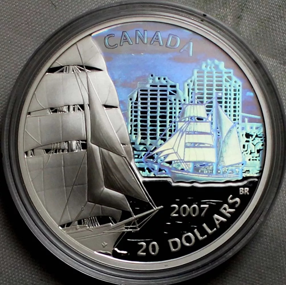 2007年 1オンス PROOF  銀貨 カナダ $20 純銀銀貨 トールシップス ホログラム COA箱付き 在庫1枚のみ