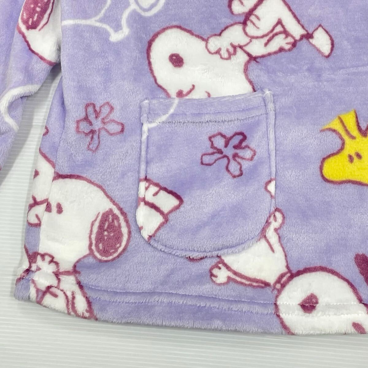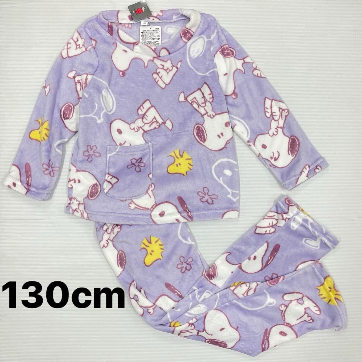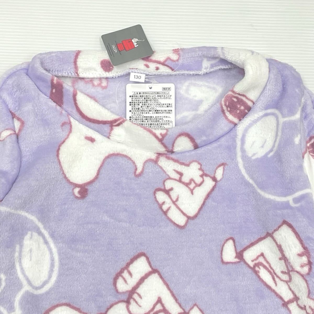 新品63462 スヌーピー130cm パープル ジュニアフリース丸首長袖フランネルパジャマ かぶり ルームウェアあったか素材男女兼用