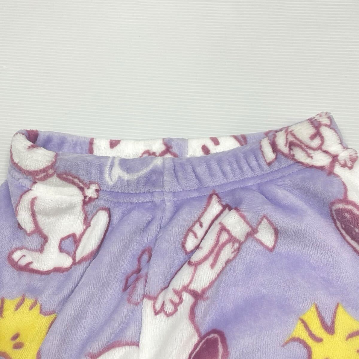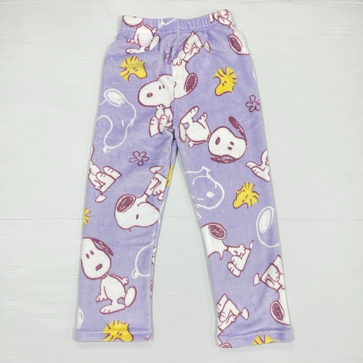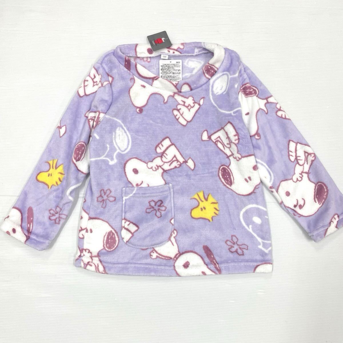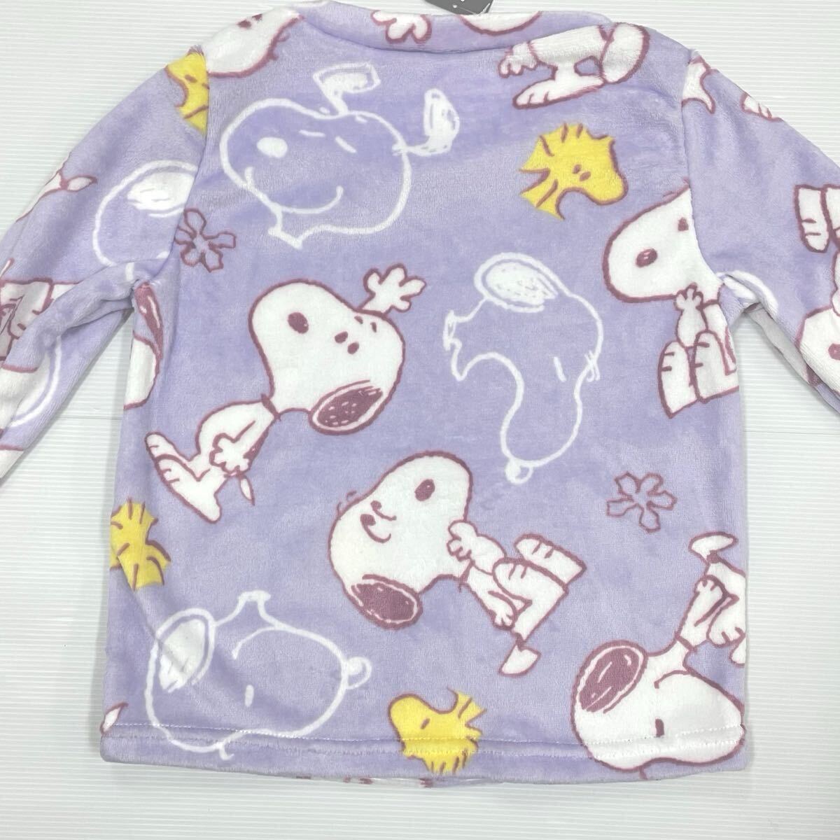 新品63462 スヌーピー130cm パープル ジュニアフリース丸首長袖フランネルパジャマ かぶり ルームウェアあったか素材男女兼用