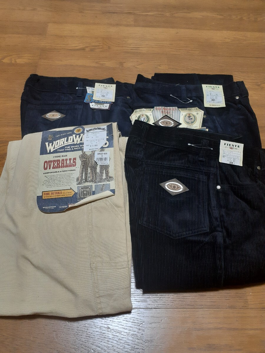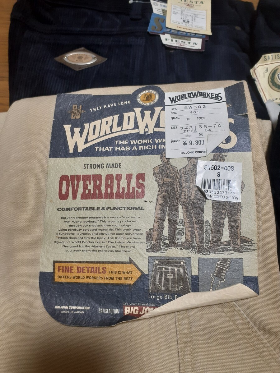 未使用、希少品、当時物のBIG JOHNコーデュロイパンツ三枚とワールドワーカーズ、オーバーオール1枚のまとめ売りです。