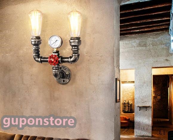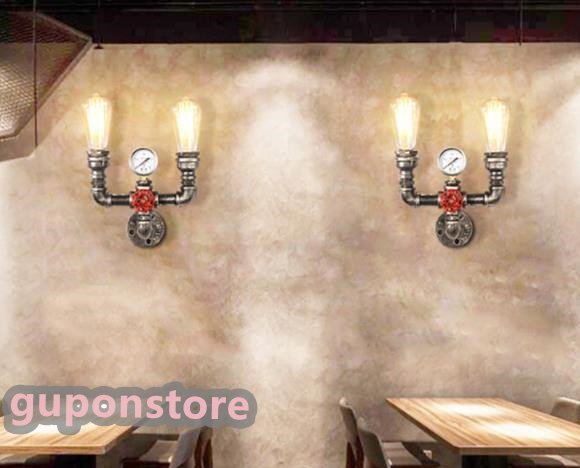 2色選択可 壁掛け照明 ブラケットライト ブラケット  男前 水道管 照明 2灯 レトロ風 玄関灯 壁取