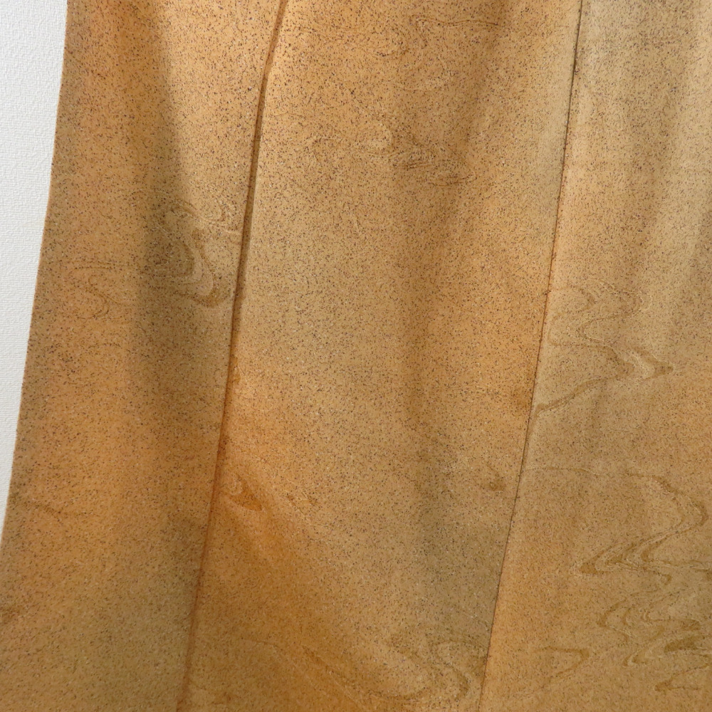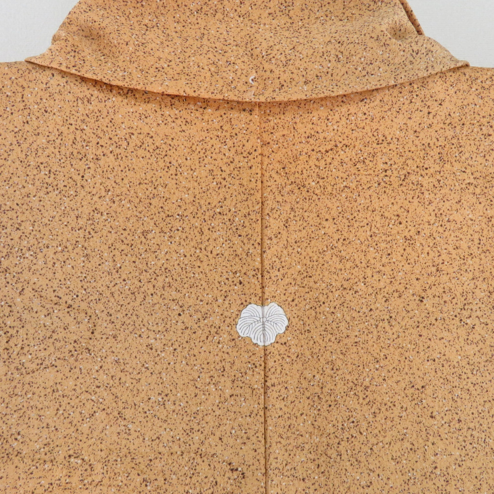 | 小紋 たたき染め文様 袷 広衿 橙色 一つ紋 蔦紋 正絹 仕立て上がり カジュアル着物 身丈155cm |